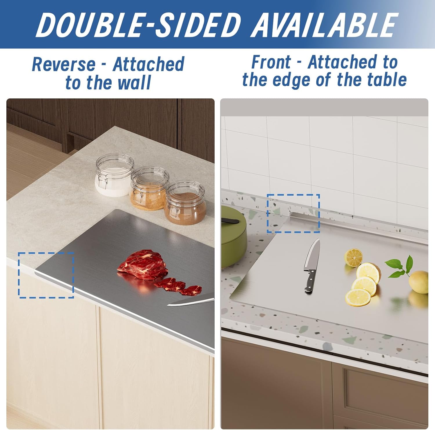 - LARGE SIZE: This 304 stainless steel cutting board measures 35.4 “L x 19.7 ”W to cover most areas of your kitchen countertop, leaving plenty of room for chopping vegetables, meat and fruit. Our board also features a non-slip silicone foot to increase friction and minimize board movement