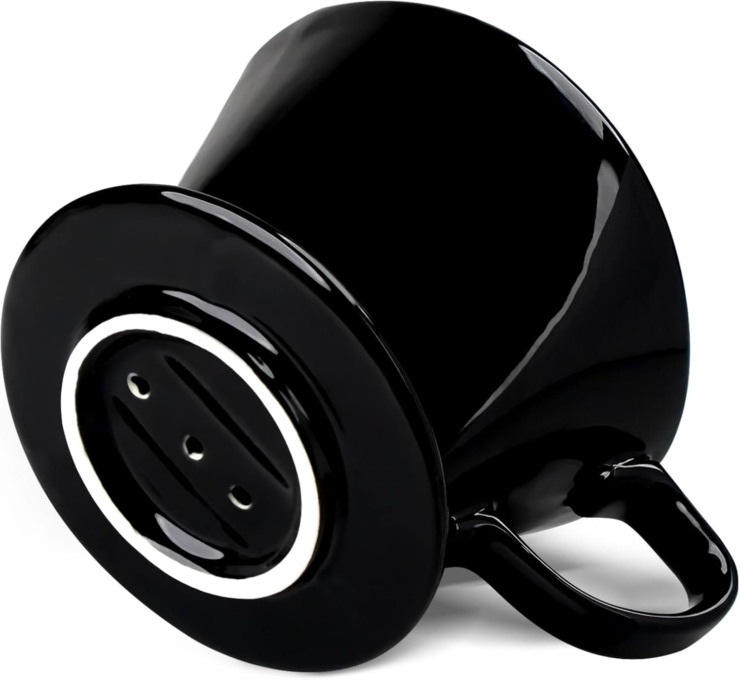 Handmade Pour Over Ceramic Coffee Dripper - Authentic Brewing Experience for Camping, Office, and Home (Black)