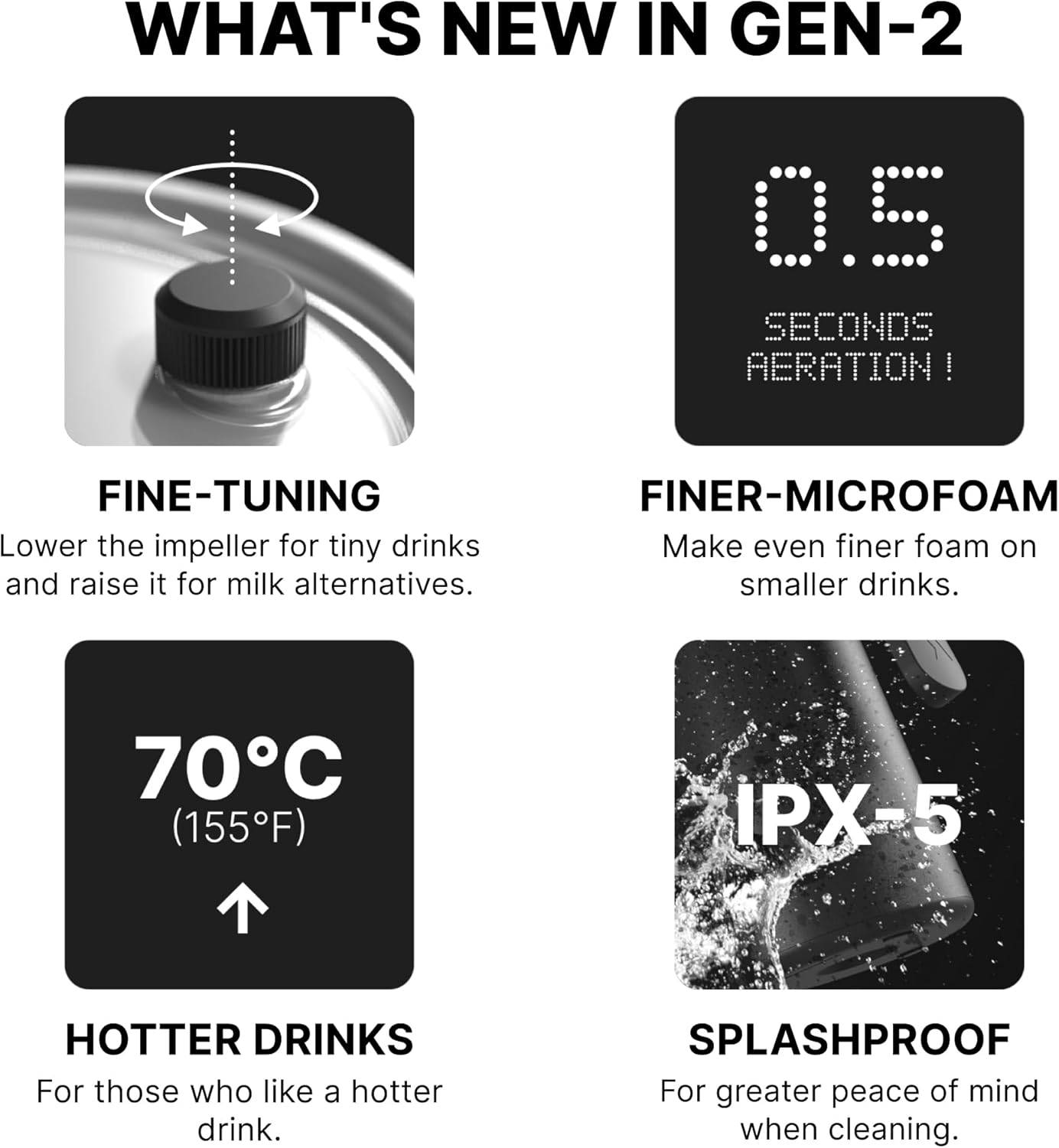 - HOTTER DRINKS WITH IMPROVED TEMPERATURE: The final temperature of your milk has been raised by 9°F, reaching up to 158°F for those who prefer their drinks hotter. Enjoy perfectly heated, velvety microfoam that enhances the flavor and experience of every cup. This milk frothing innovation is an ideal addition to your coffee accessories, delivering hotter and creamier drinks every time.