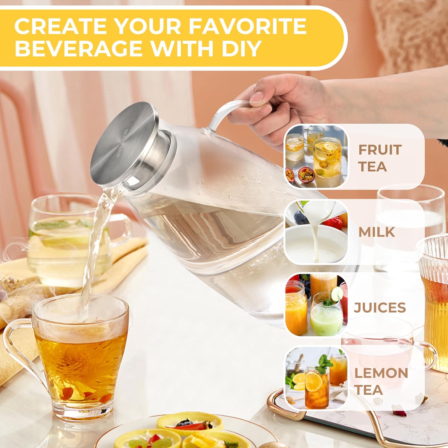 - For All Occasions: SUSTEAS This water bottle is widely used for water, iced tea, hot tea, fruit-flavored water, homemade beverages, cold-brewed coffee, sangria, fruit juices, lemonade, milk, wine, cocktails, light smoothies and more