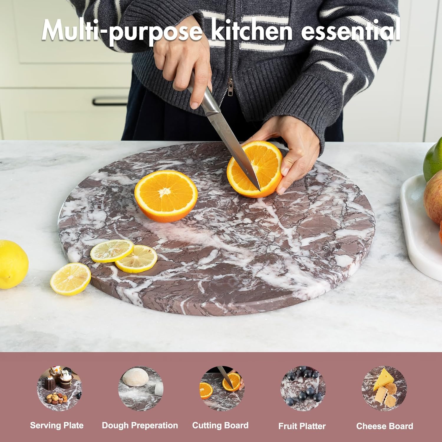 Koville African Lilac Marble Cutting Board Serving Tray for Kitchen Countertop, 16" Large Marble Cheese Board for Baking, Charcuterie, Pastry, Trivet, Heat Resistant Stone Cutting Boards for Kitchen