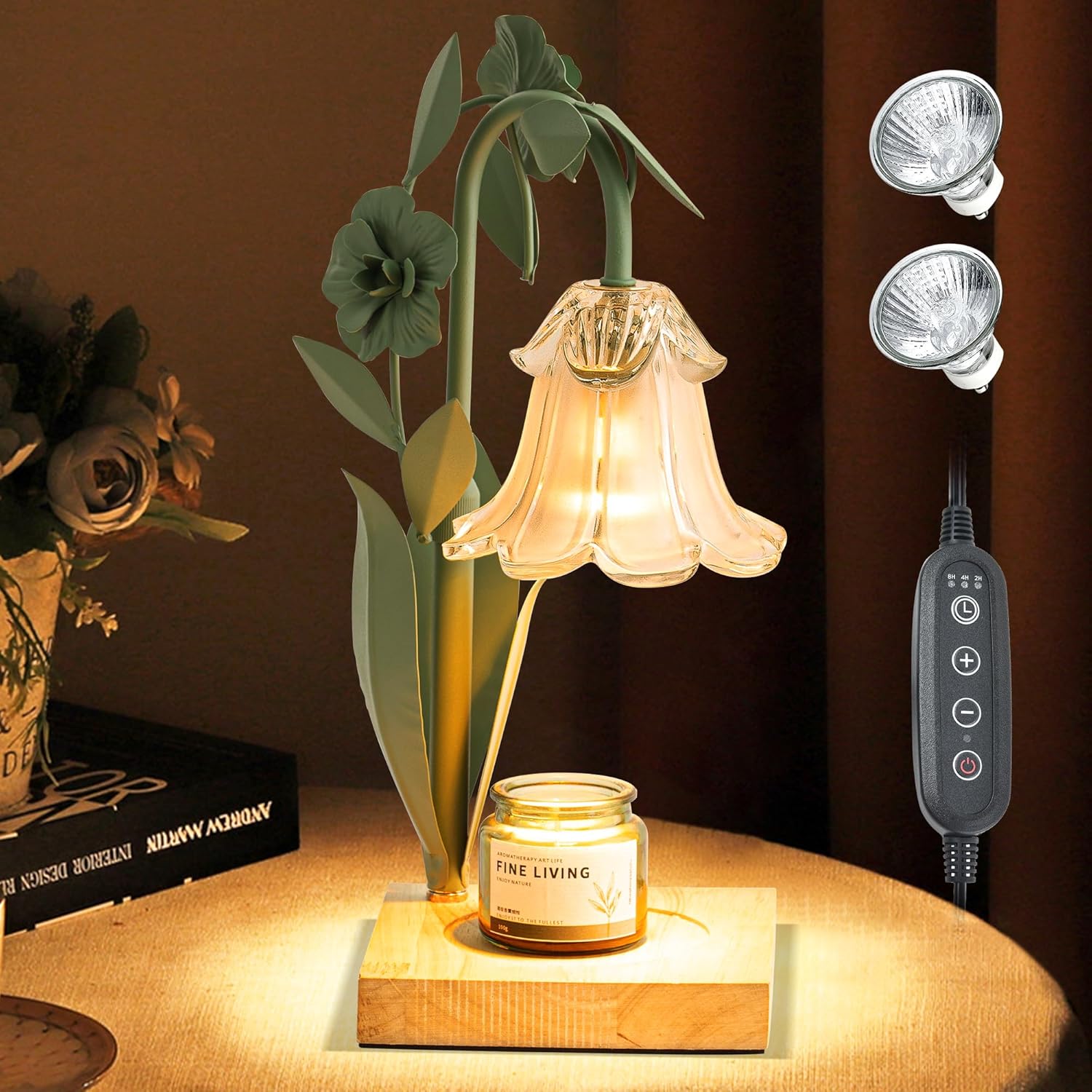 Flower Candle Warmer Lamp with Timer,Dimmable Candle Lamp Warmer,Adjustable Height Candle Warmer for All Jar Candles,Bedroom Living Room Home Decor Aesthetic Christmas Birthday Gifts for Women