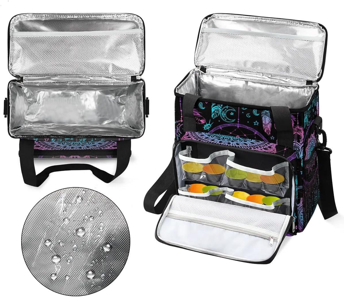 Dreamcatcher Feather Coffee Maker Carring Bag Travel Carrying Storage Tote Bag Compatible with Keurig K-Mini or K-Mini Plus Portable Single Serve Coffee Brewer Case with Pockets for K-cup Pods