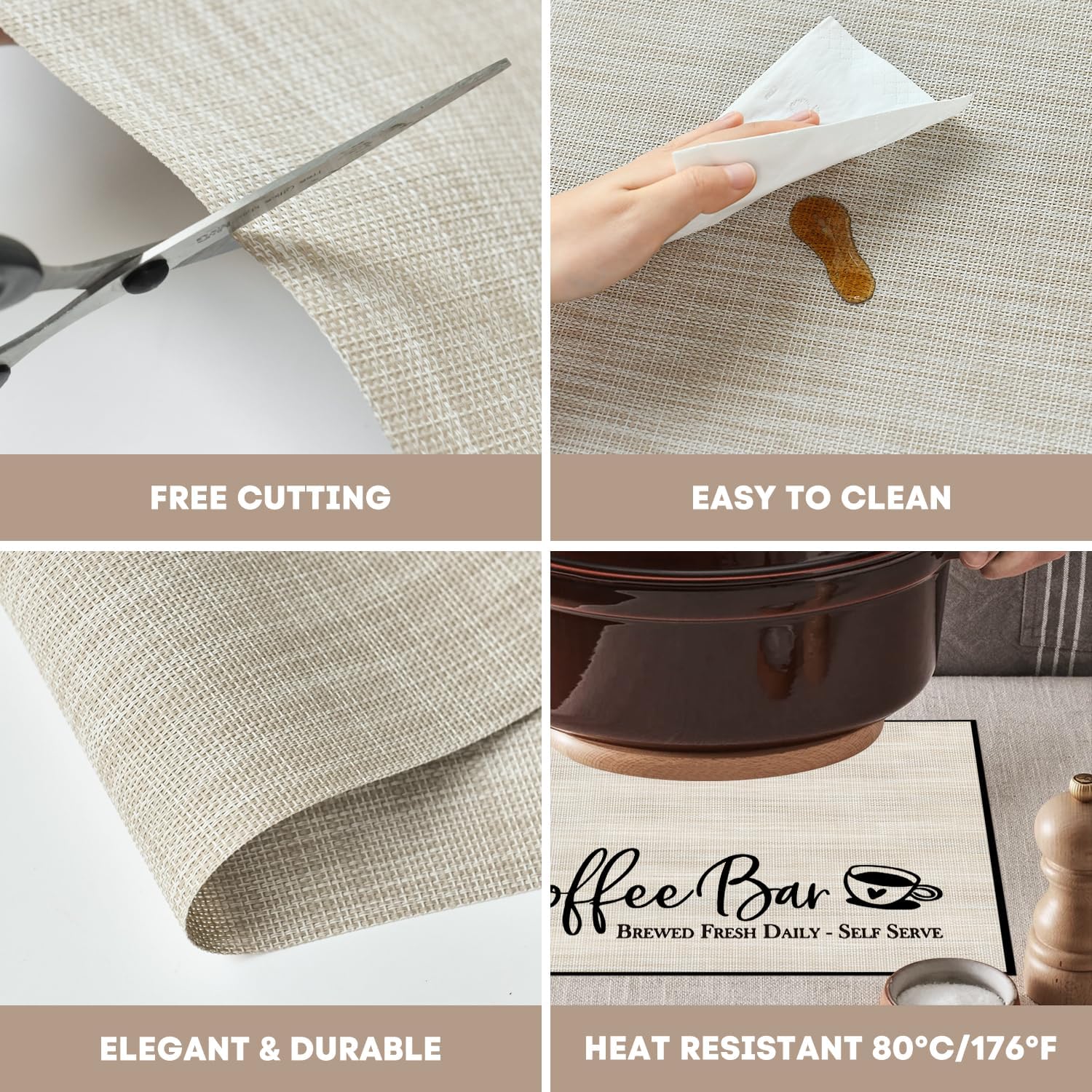 - Protect Your Table:The wipeable placemat Heat-resistant up to 176°F (80°C), perfect to protect your dining table from food stains and burns.