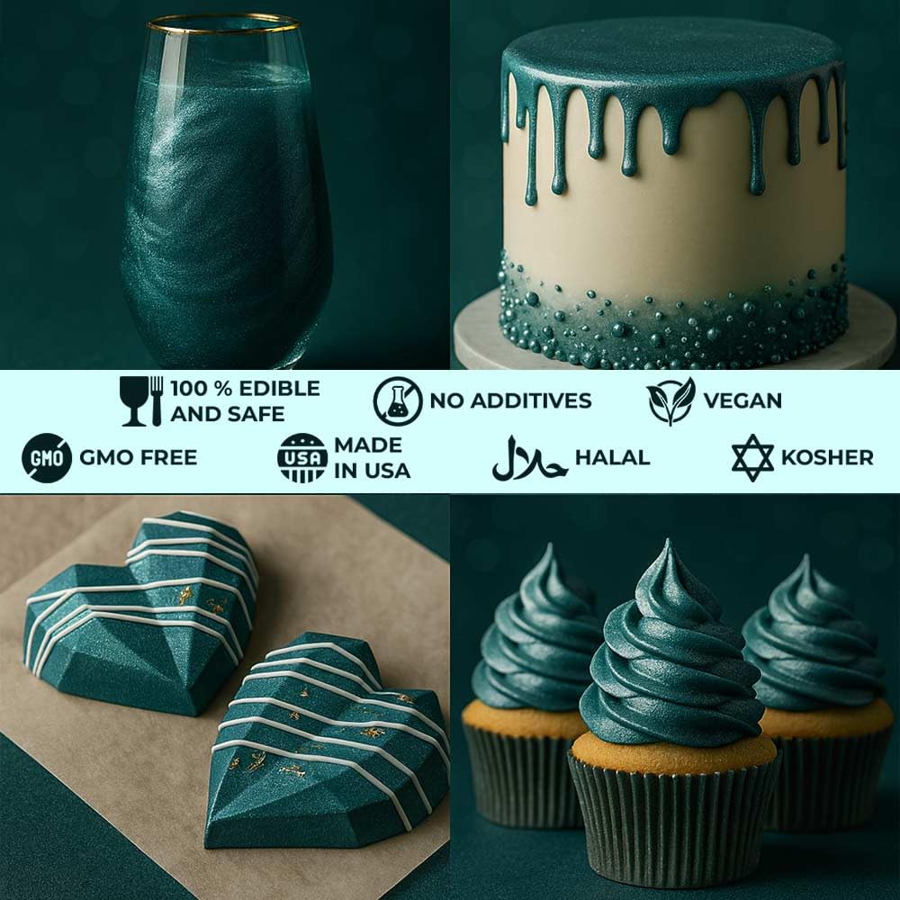 - ๐๐ข๐ข๐ ๐๐ฅ๐๐๐๐, ๐ฉ๐๐๐๐ก ๐๐ฅ๐๐๐ก๐๐๐ฌ & ๐ ๐๐๐ ๐๐ก ๐ง๐๐ ๐จ๐ฆ๐ Crafted with 100% safe food grade ingredients our luster dust is tasteless, vegan, gluten and dairy free, halal and is made locally in the US. Our edible dark green dust is safe for kids and everyone it also works great as cake drip, cake decor for dark green cake decorations for professional results without affecting its taste