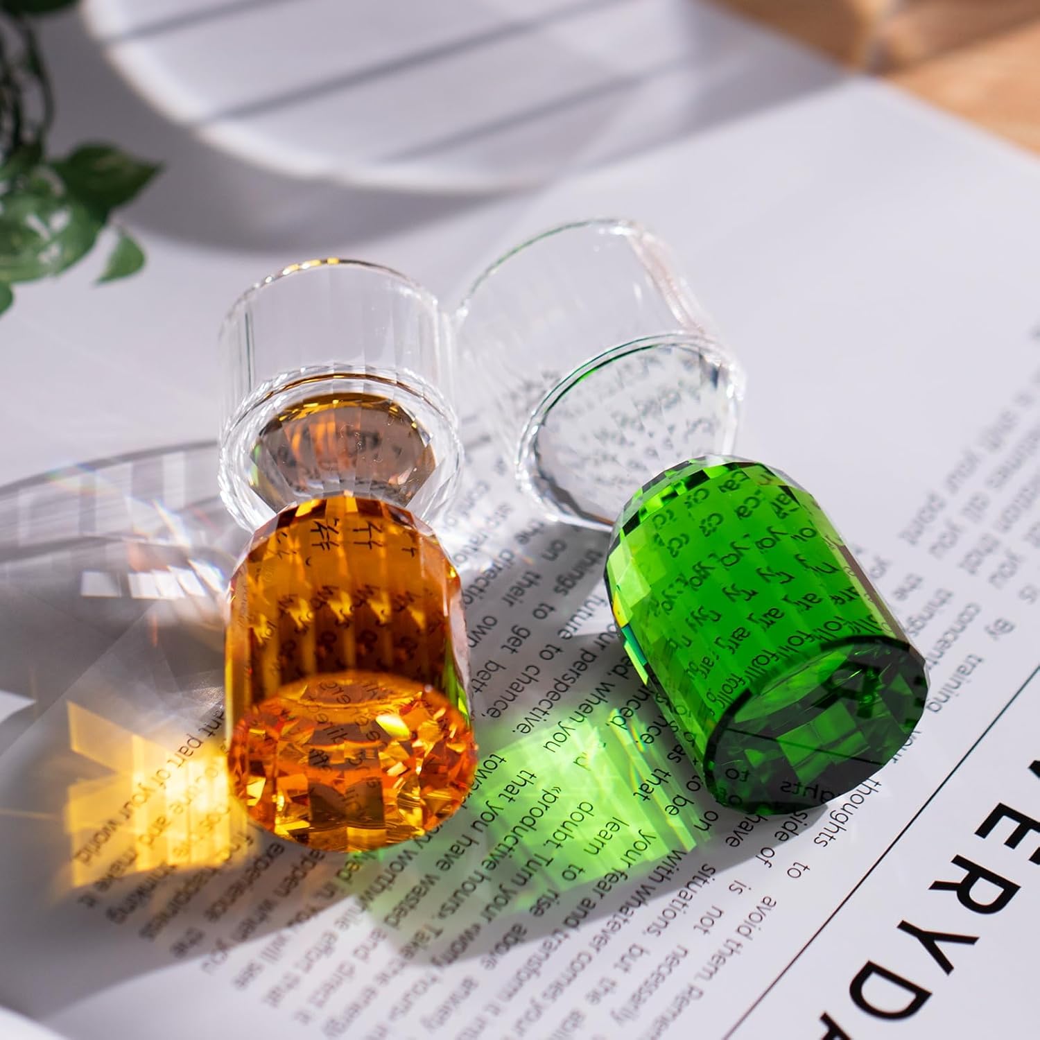 KAMMAK Crystal Shot Glasses Set of 2, Stemless Handcrafted Shot Glasses, 0.4 oz Engagement Gifts for Couples, Women, Men, Hand Blown, White with Colored