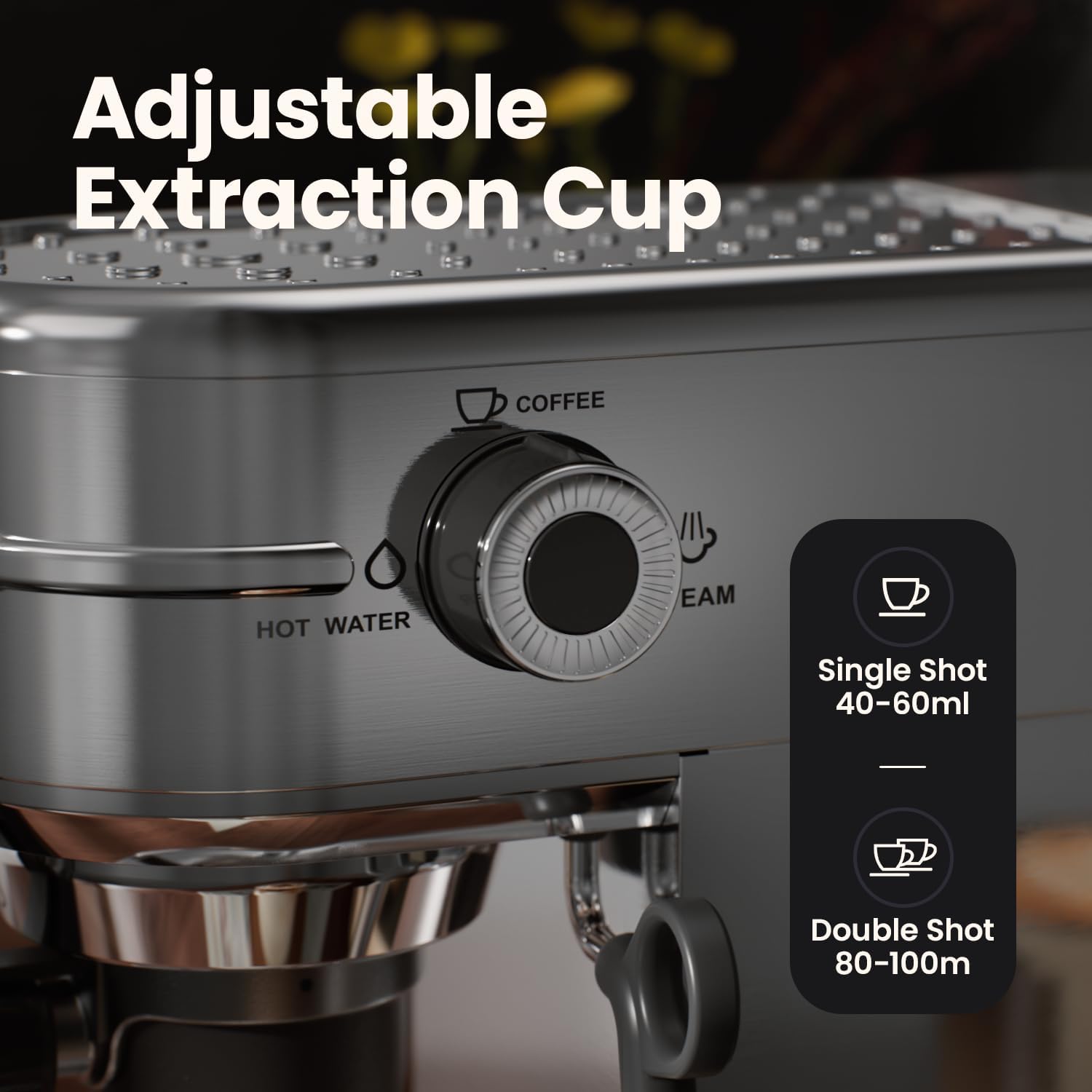 Espresso Machine - 20Bar Coffee Maker with Foaming Steam Wand: 1450W Compatible for Original Capsule & Ground, Single-Serve Espresso Maker with 35Oz Removable Water Tank for Latte, Kitchen