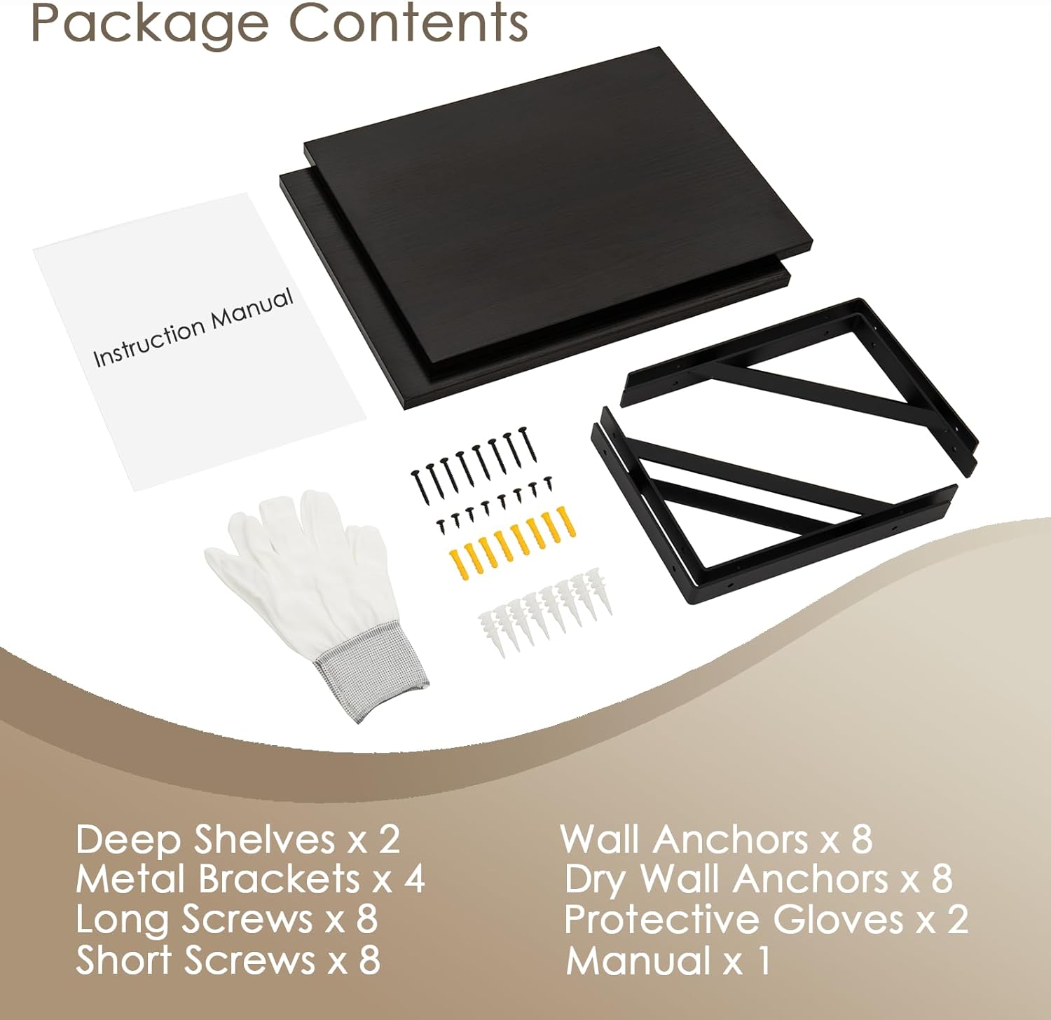 DINZI LVJ Deep Floating Shelves, 16" W x 12" D Wall Shelves Set of 2, Wide Display Shelf Mounted with Brackets, Easy-to-Install Wall Bookshelf for Living Room, Bathroom, Bedroom, Espresso