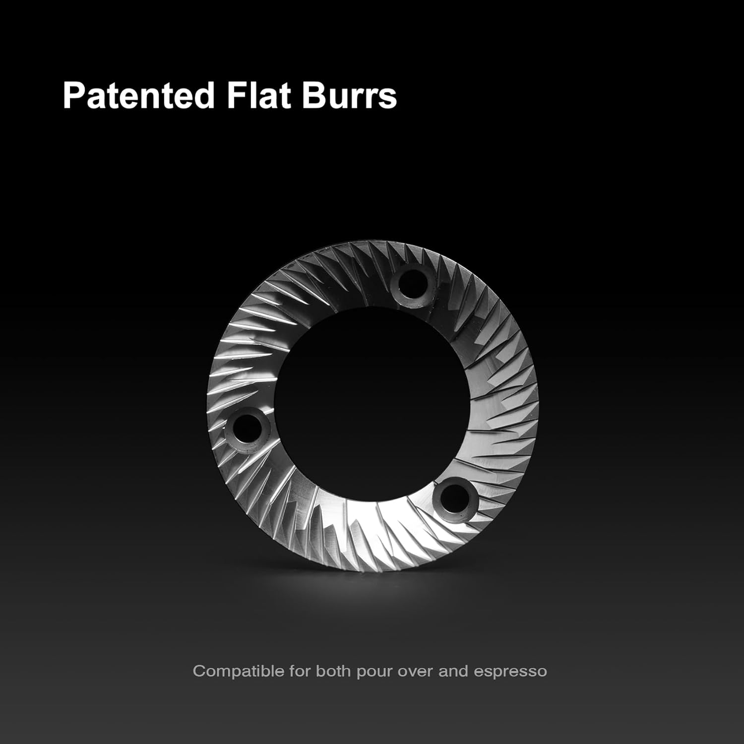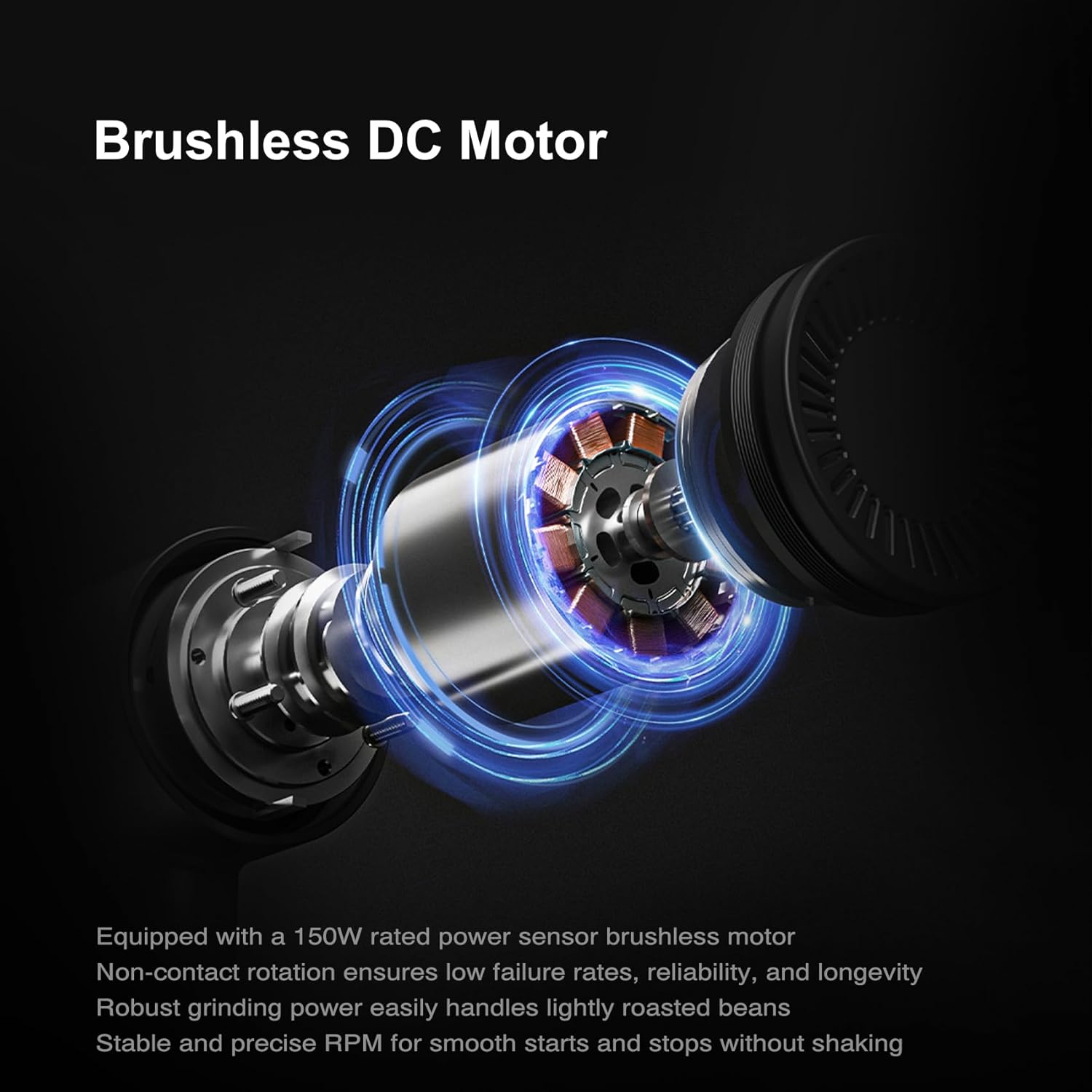 - [ Sensory Brushless Motor ] Our Burr Coffee Grinder uses a zero-friction motor with PID control and Hall elements for smoother operation, longer lifespan, and greater stability. Unlike traditional brushed motors, it doesnāt shake during use, providing a more precise grind every time.