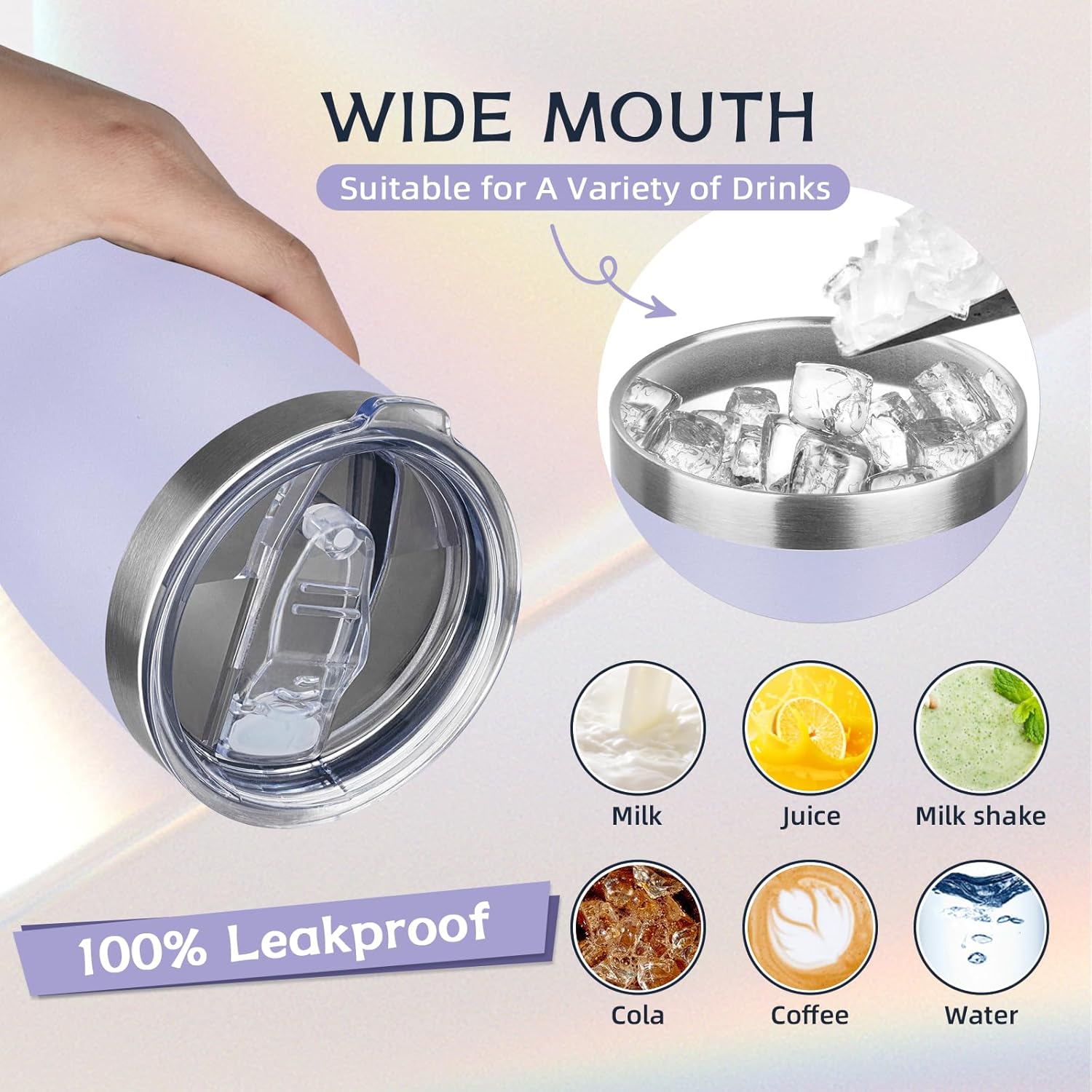 MEZMUT 20oz Coffee Tumbler with Lid and Straw Double Wall Vacuum Insulated Cup Stainless Steel Travel Mugs Insulated for Hot & Cold Leakproof Powder Coated Tumbler for Indoor Outdoor(Light Purple)