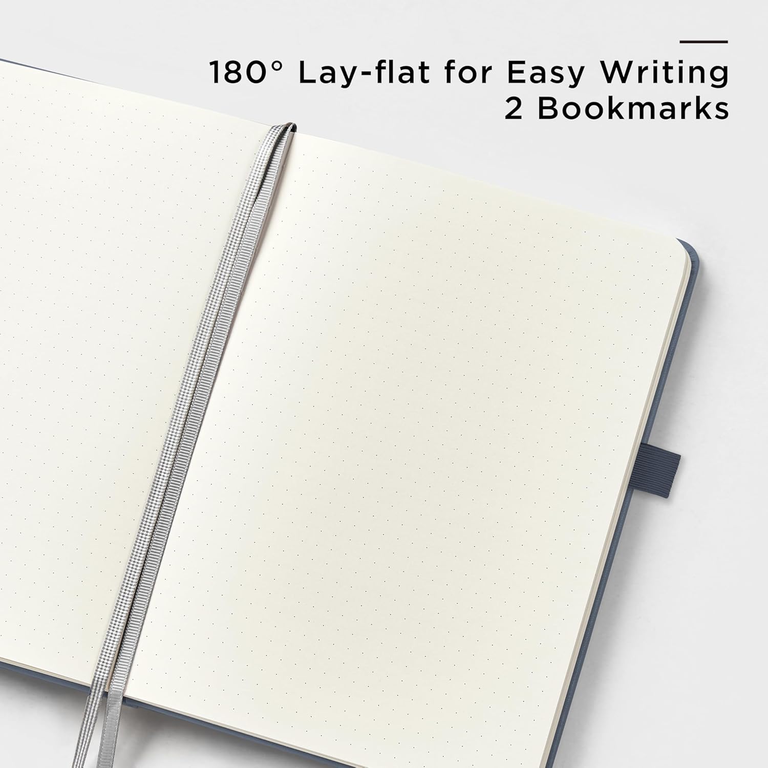- 180° LAY-FLAT DESIGN: The lay-flat design allows for easy writing and ensures that you can utilize every page efficiently. Journaling, note-taking and planning has never been easier! 2 Bookmarks to help you find important content faster