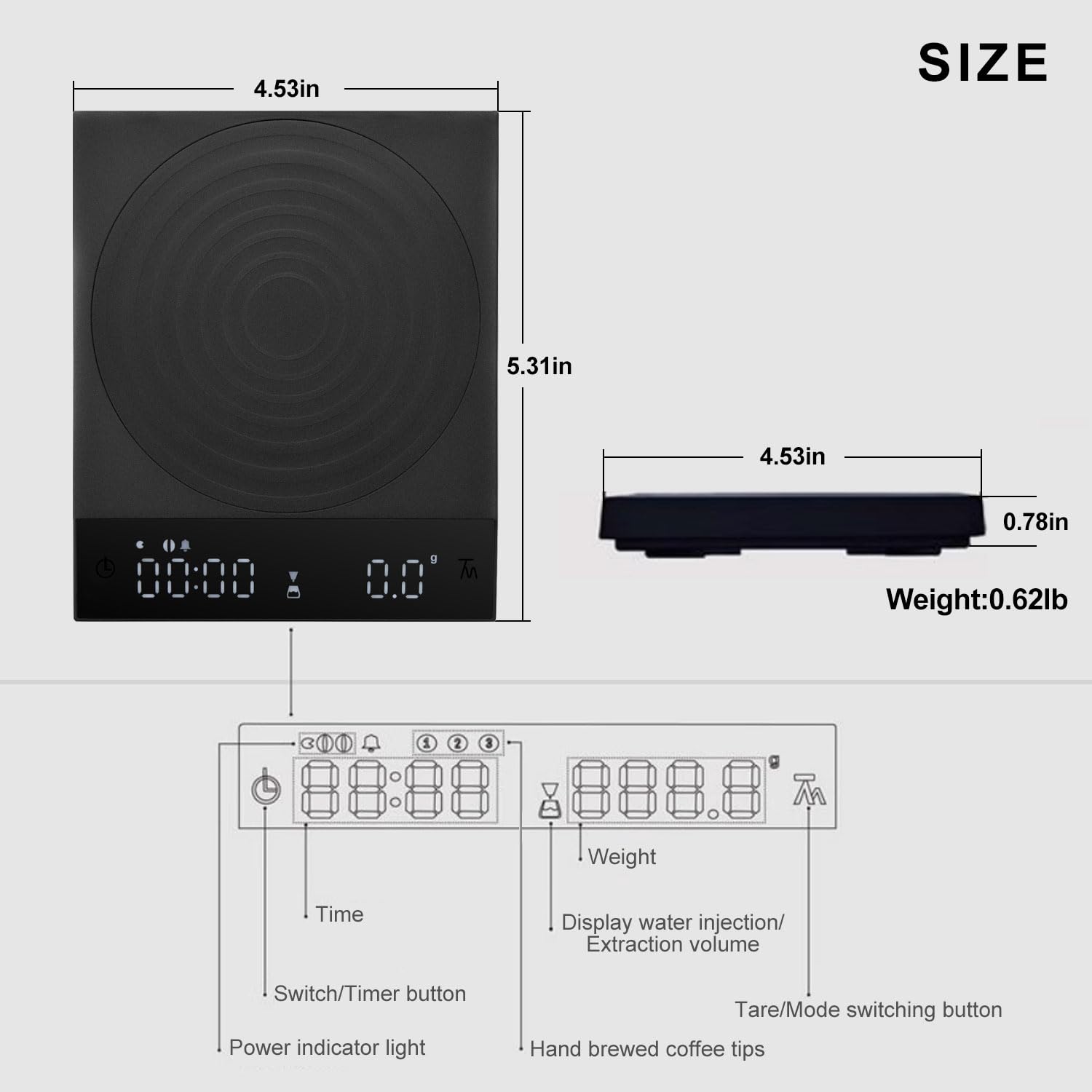 - 【Dual mode】 Regular mode and manual automatic mode The manual automatic mode can display the weight of coffee extract and the total weight of water injection, providing reference for your extraction