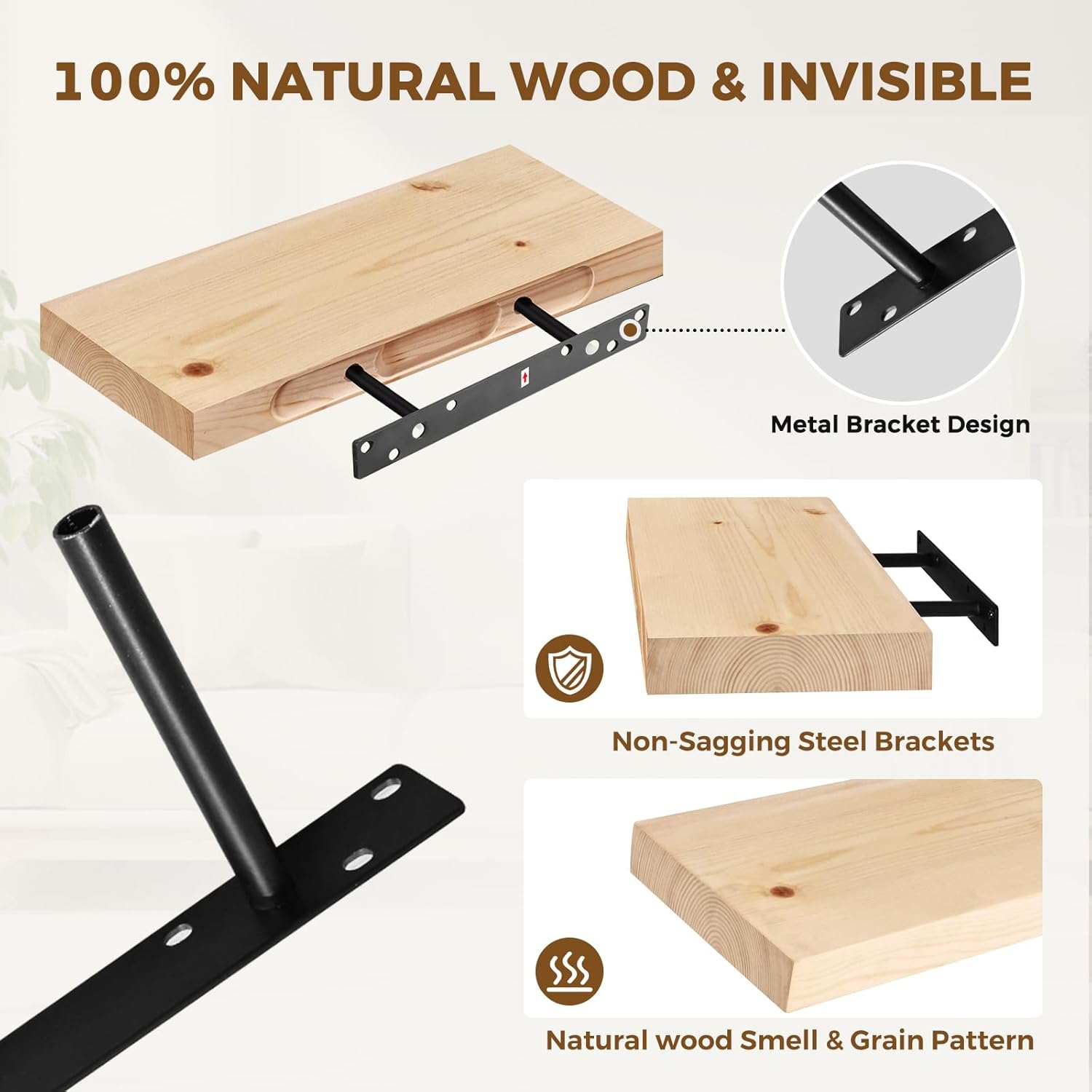 - Premium Solid Wood:Crafted from solid wood, this floating wall shelf features a visible natural grain, offering charm, durability, and a rustic-modern aesthetic
