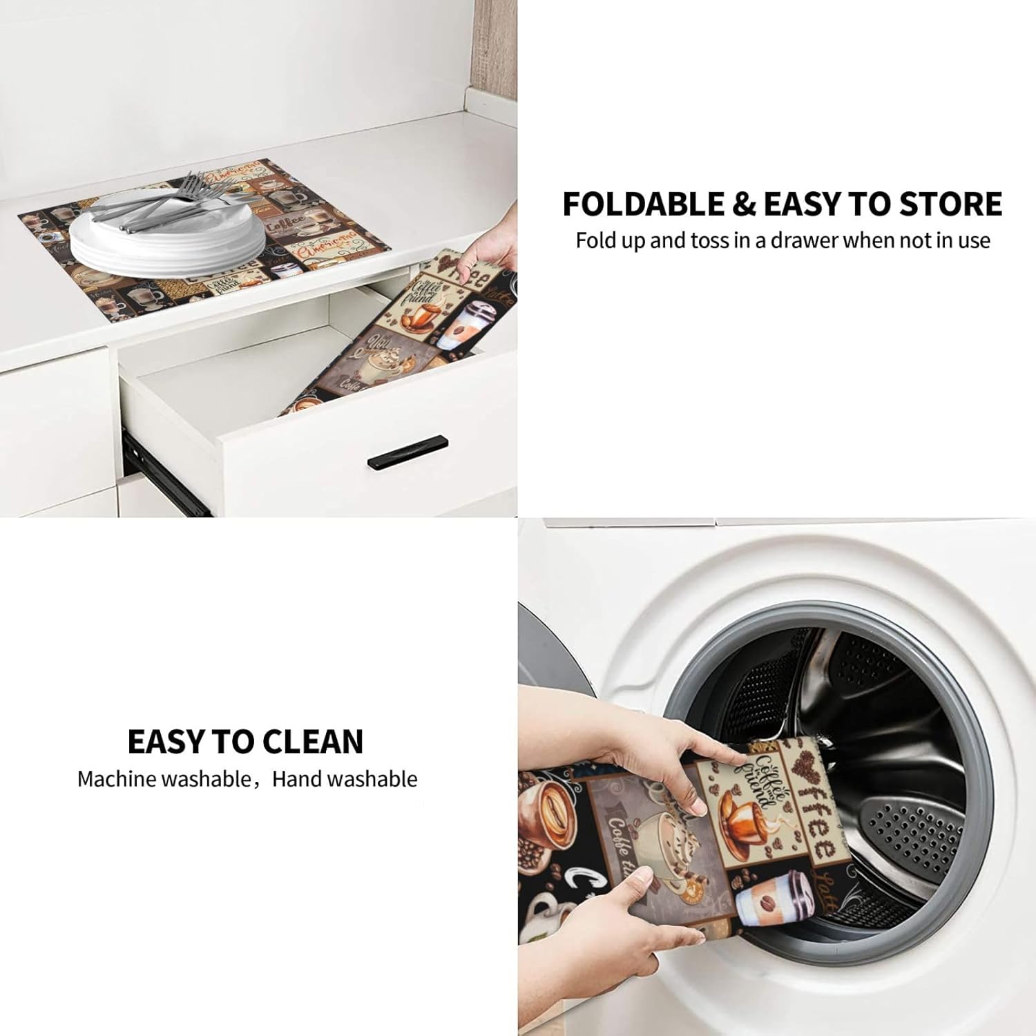 - Size -- 16*18inch/41*46cm. Different Design On 2 Sides, One Side Can Suck Moisture With Aesthetics Pattern, Another One Gray Non-Slip Side. It Is A Versatile Addition To Your Kitchen. Our Coffee Mats Are A Must-Have Accessory For All Coffee Lovers