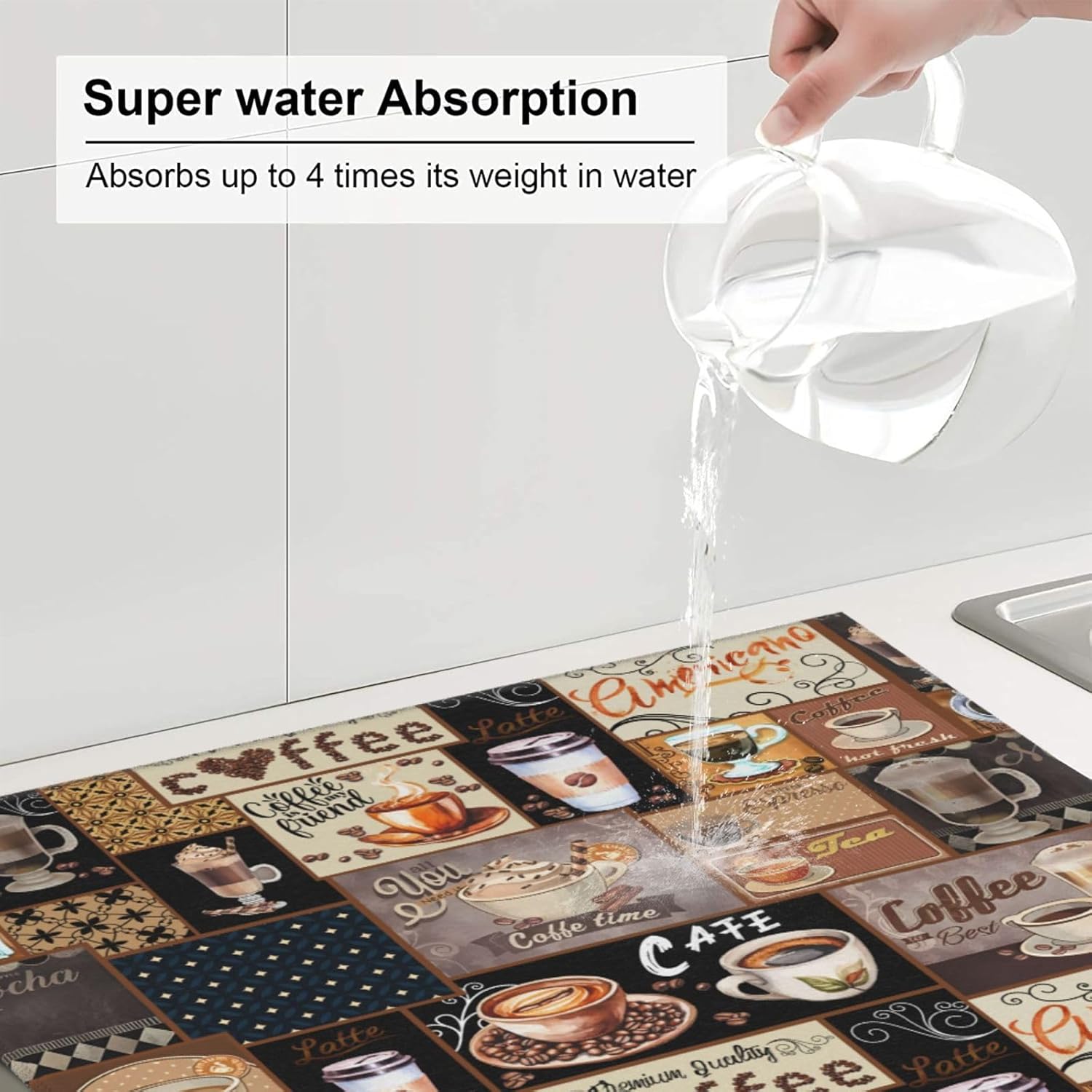 Boho Coffee Dish Drying Mat, Highly Absorbent Microfiber Kitchen Counter Pad Reusable Washable, 16*18"