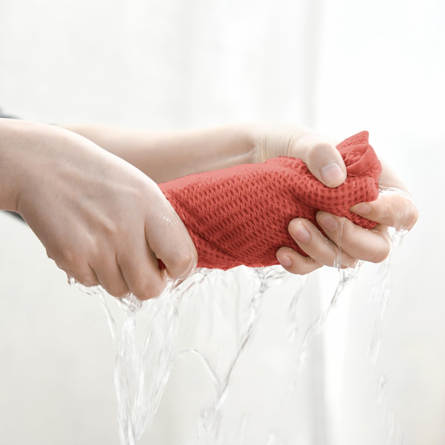 Artoid Mode 100% Cotton Red Waffle Weave Kitchen Dish Cloths, 13x28 Inch Ultra Soft Absorbent Quick Drying Kitchen Dish Towels Set of 4
