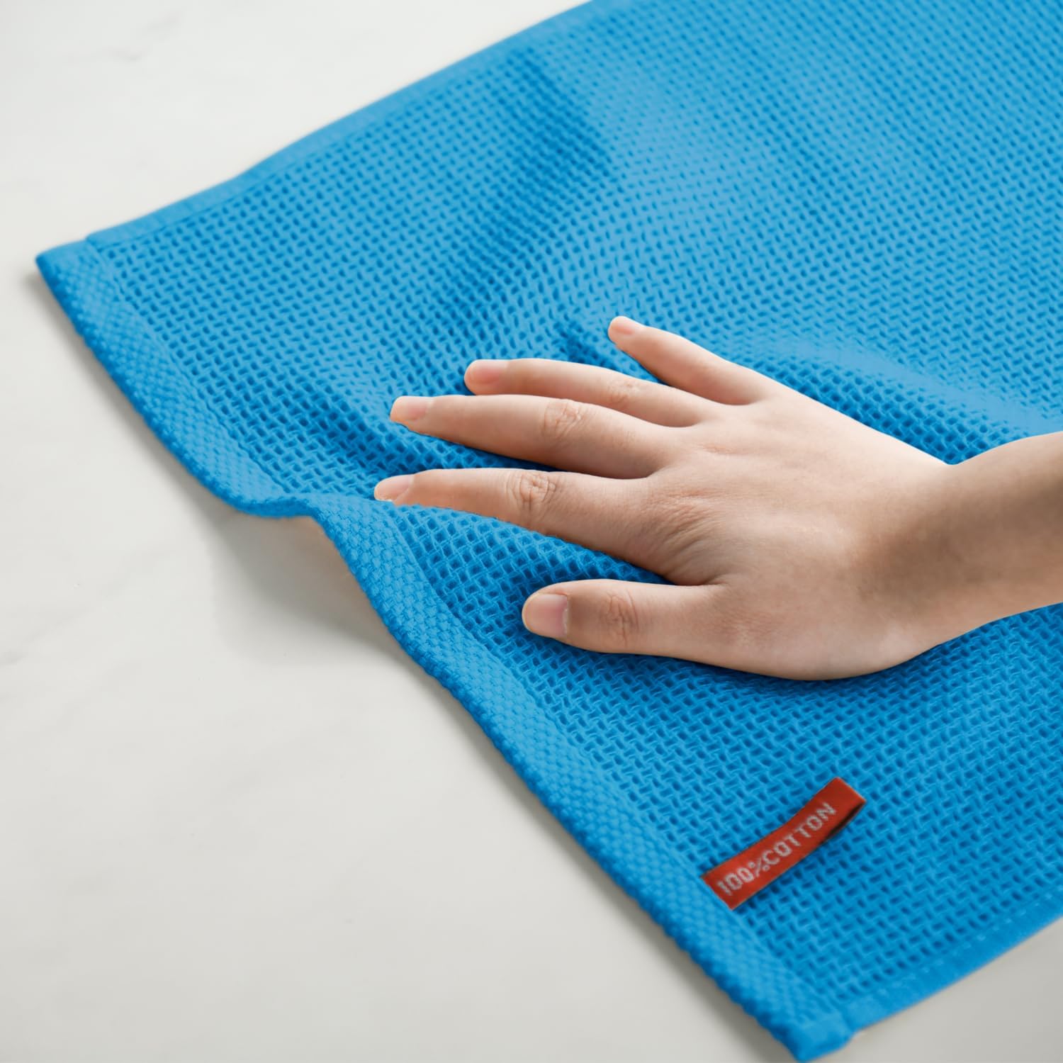 Artoid Mode 100% Cotton Sky Blue Waffle Weave Kitchen Dish Cloths, 12x12 Inch Ultra Soft Absorbent Quick Drying Kitchen Dish Towels Set of 6