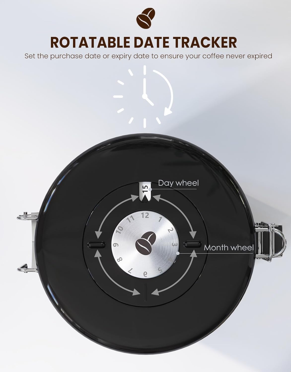 - 【Avoid Deteriorated Coffee】 - With a tight seal by our airtight vacuum sealed coffee container, normal roasted coffee could keep the best flavor within 4-5 weeks. You can easily set storage date or expiry date via the rotated date tracker(Time Adjustment Dial) on the lid, to better control the storage period and always enjoy your coffee in freshness and ultimate flavor