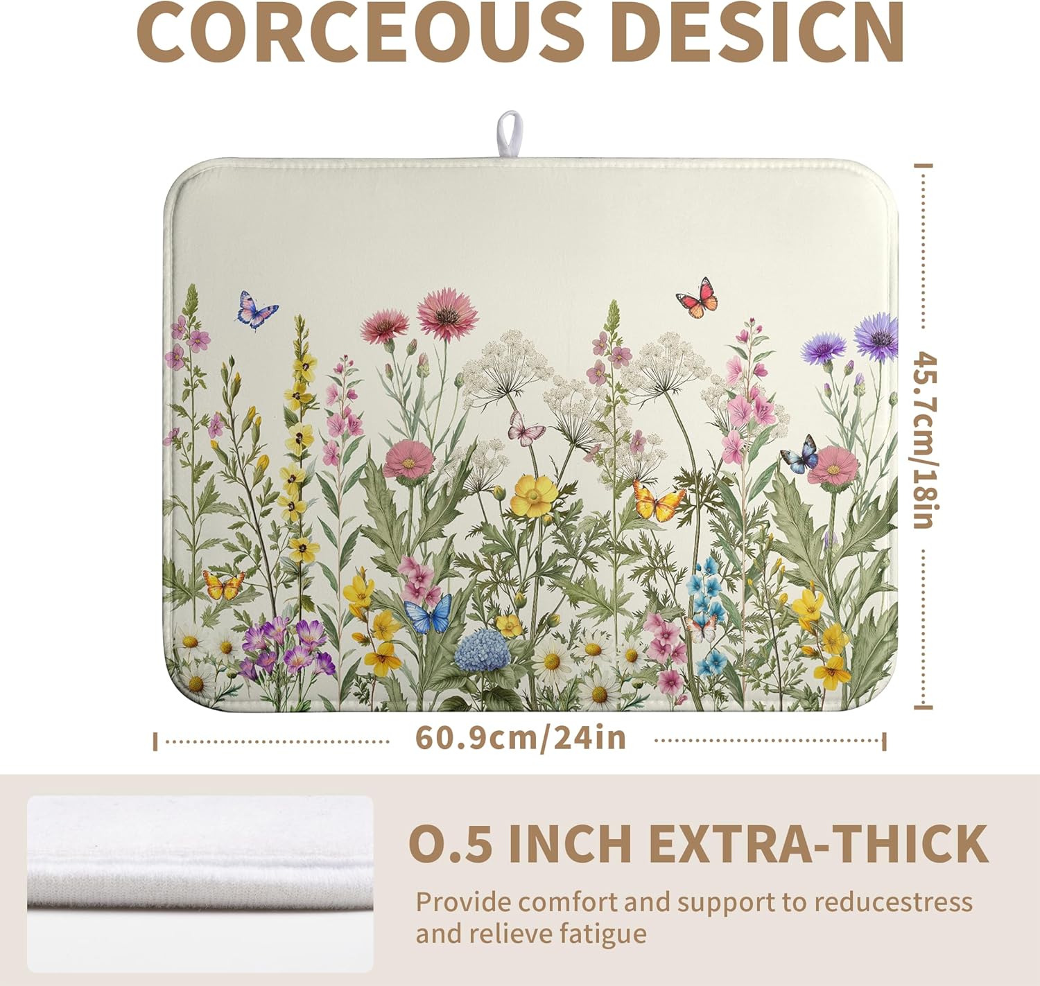 - [Quick Absorption]: Made of absorbent material, our Spring Summer dish drying matt kitchen counter Floral Flowers dish dryer mat for kitchen absorbs water stains quickly, keeping your table top dry and clean, avoiding water stains and leaks, providing you with a pleasant and dry dining or working experience.