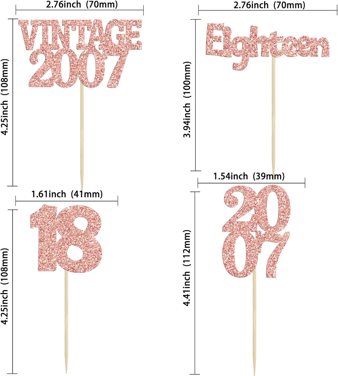 Gyufise 24Pcs 18th Birthday Cupcake Toppers Glitter Eighteen Vintage 2007 Hello 18 Years Birthday Cupcake Picks Adultish 18 Cake Decoration for Happy 18th Birthday Anniversary Party Supplies Rose Gold