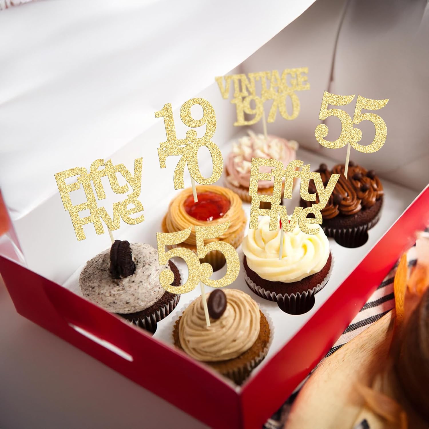 - Premium Material: These 55th Birthday Cupcake Toppers are made of high quality 300 gram card stock and food-grade toothpick, very safe to put them on cakes, cupcakes, ice cream, fruits, pie, dessert, cheese or any dish and food appetizer you want to decorate Valentine theme party decorations.