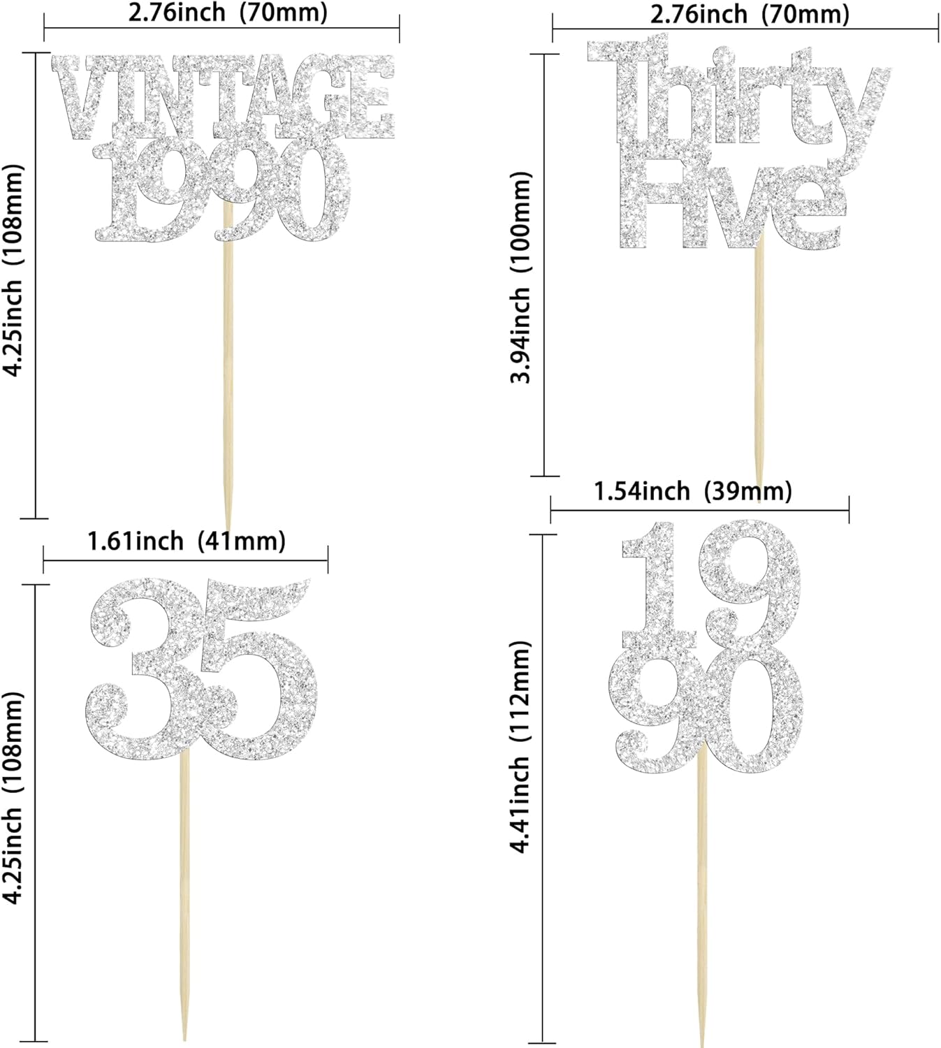 - 35th Birthday Cupcake Toppers are so cute and good for 35th birthday party, 35th wedding anniversary party, 35th birthday cupcake decorations.They can make your cupcake more attractive and bring the fun to your party. You can also apply them for ice cream, fruits, cookies and other desserts.