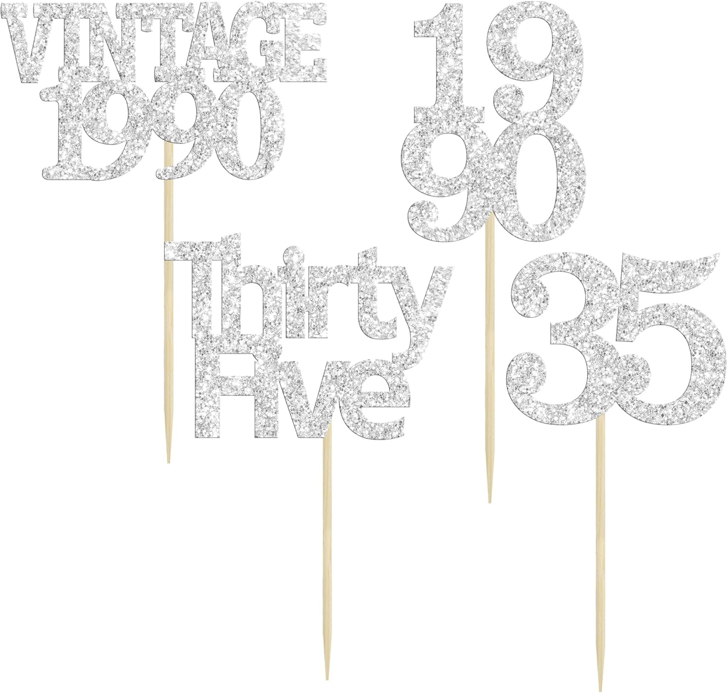 - Package included: 24Pcs 35th Birthday Cupcake Toppers. Comes with assembled, so you can insert into your cake directly, which make your cake more interesting.