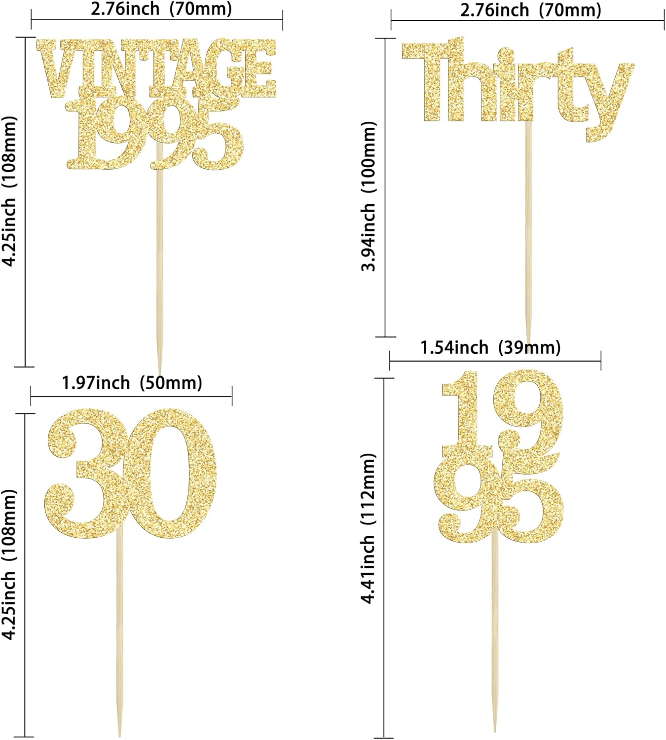 Gyufise 24Pcs Happy 30th Birthday Cupcake Toppers Glitter Thirty 30 Fabulous Vintage 1995 Cupcake Picks for 30th Birthday Wedding Anniversary Party Cake Decorations Supplies Gold