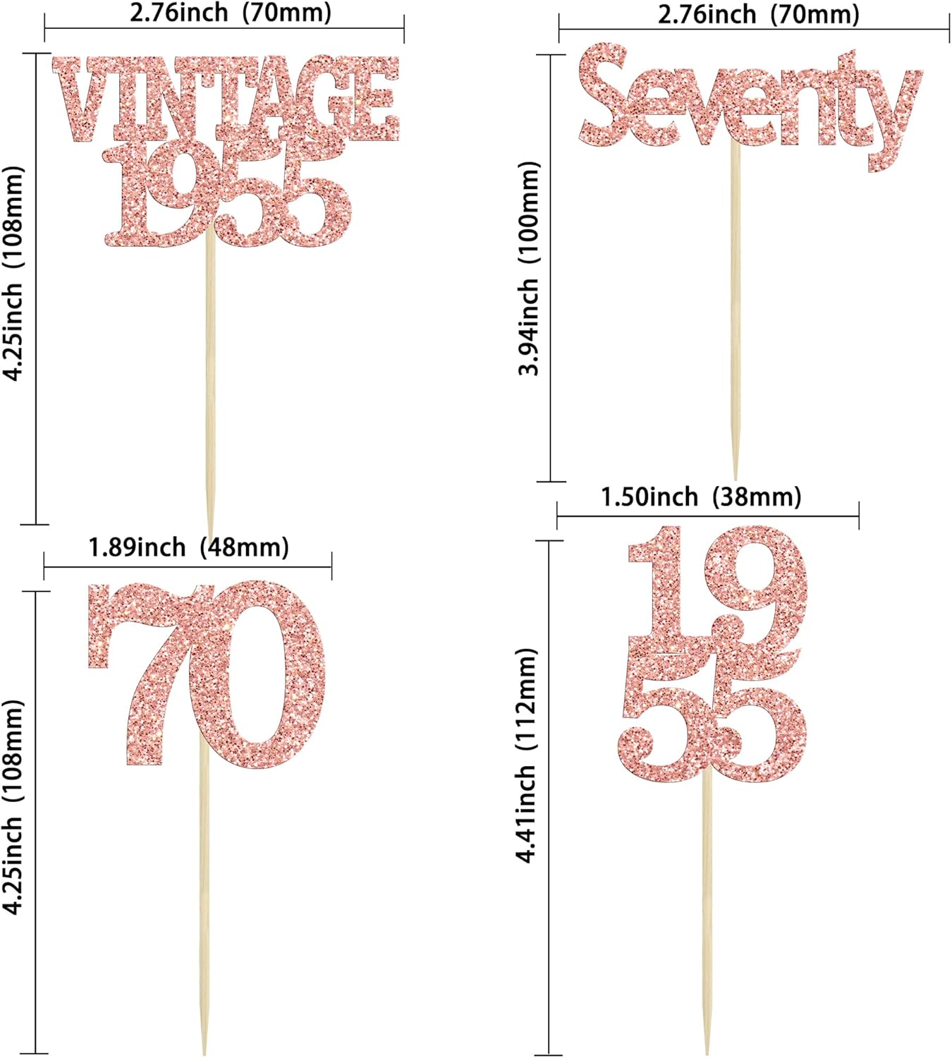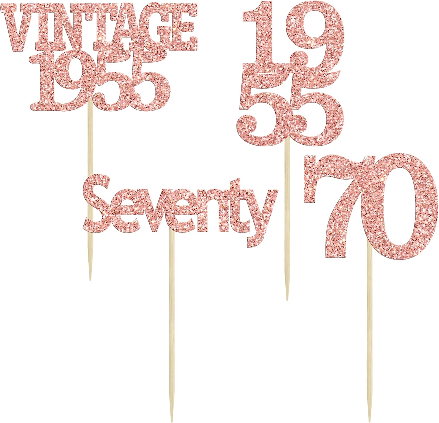 Gyufise 24Pcs 70th Birthday Cupcake Toppers Glitter Cheers to 70 Fabulous Seventy Vintage 1955 Cupcake Picks 70th Birthday Wedding Anniversary Party Cake Decorations Supplies Rose Gold