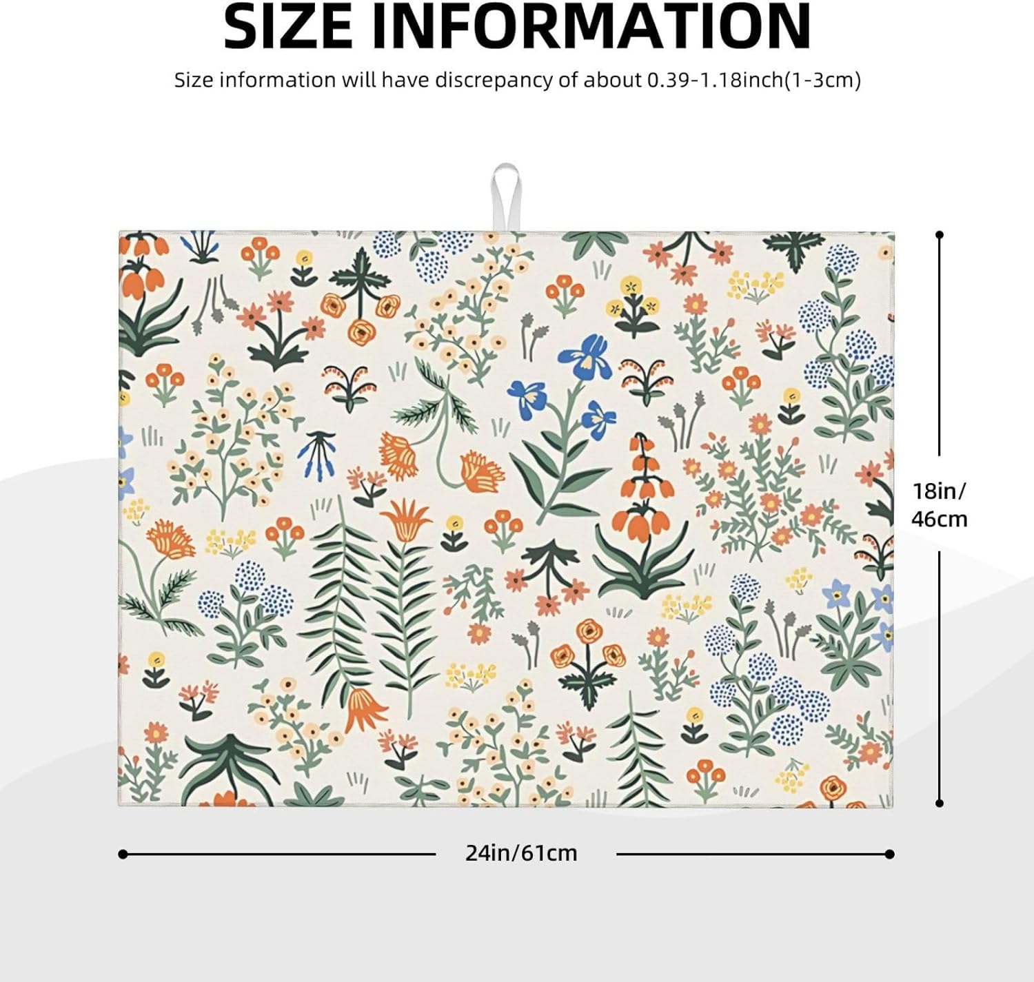 2Pcs Dish Drying Mats Faucet Mats Sets Large Size Coffee Mats Sink Faucet Mat Splash Guard for Kitchen Counter Bathroom Sink Coffee Bar Kitchen Decor (Wildflowers 2, 18"x24" 15" x 5.5"Set)