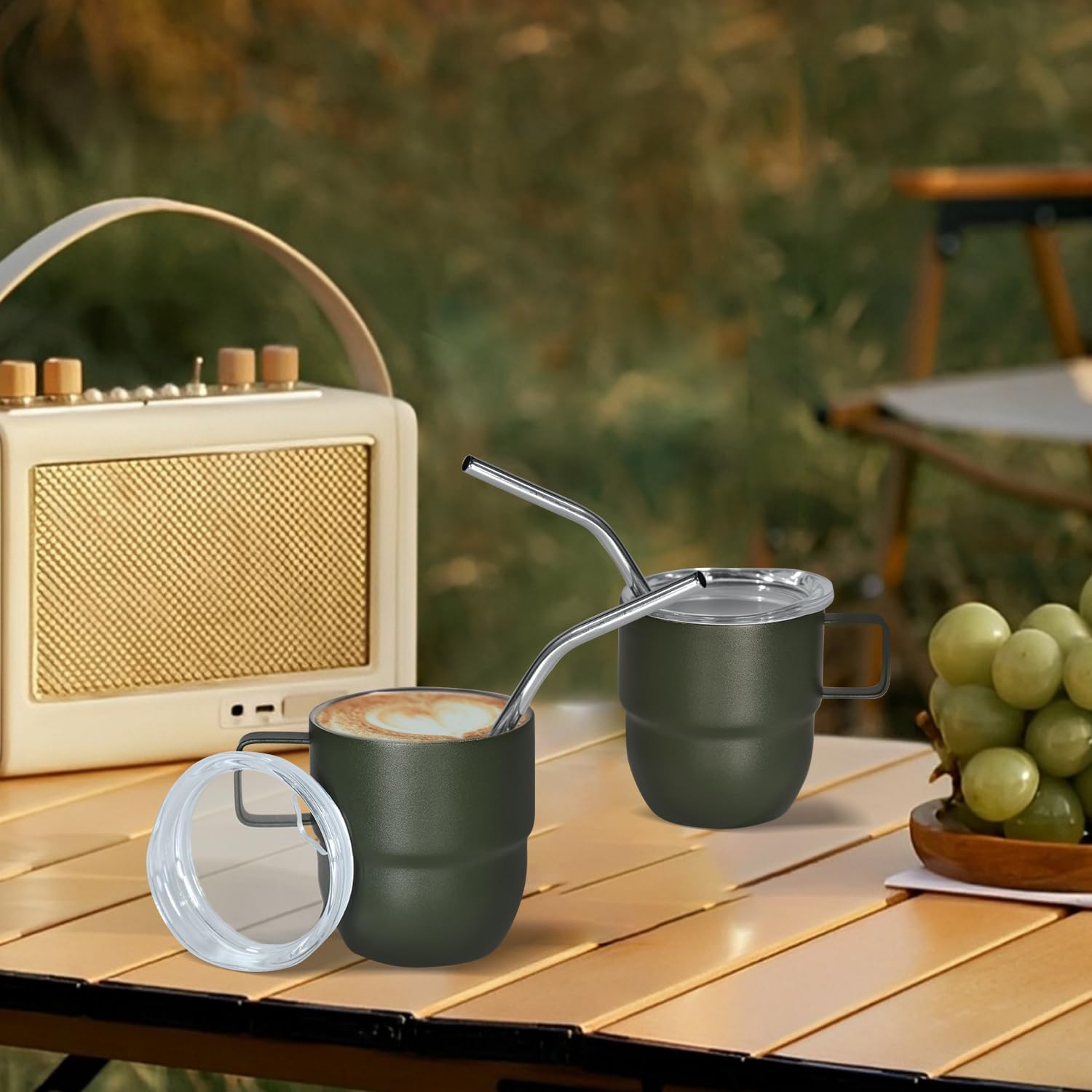 4oz Stackable Cup, Vacuum Insulated Espresso Cup Set of 2, Espresso Shot Mug for Coffee, Double Wall Stainless Steel Mini Tumbler Shot Glasses with Straw and Lid