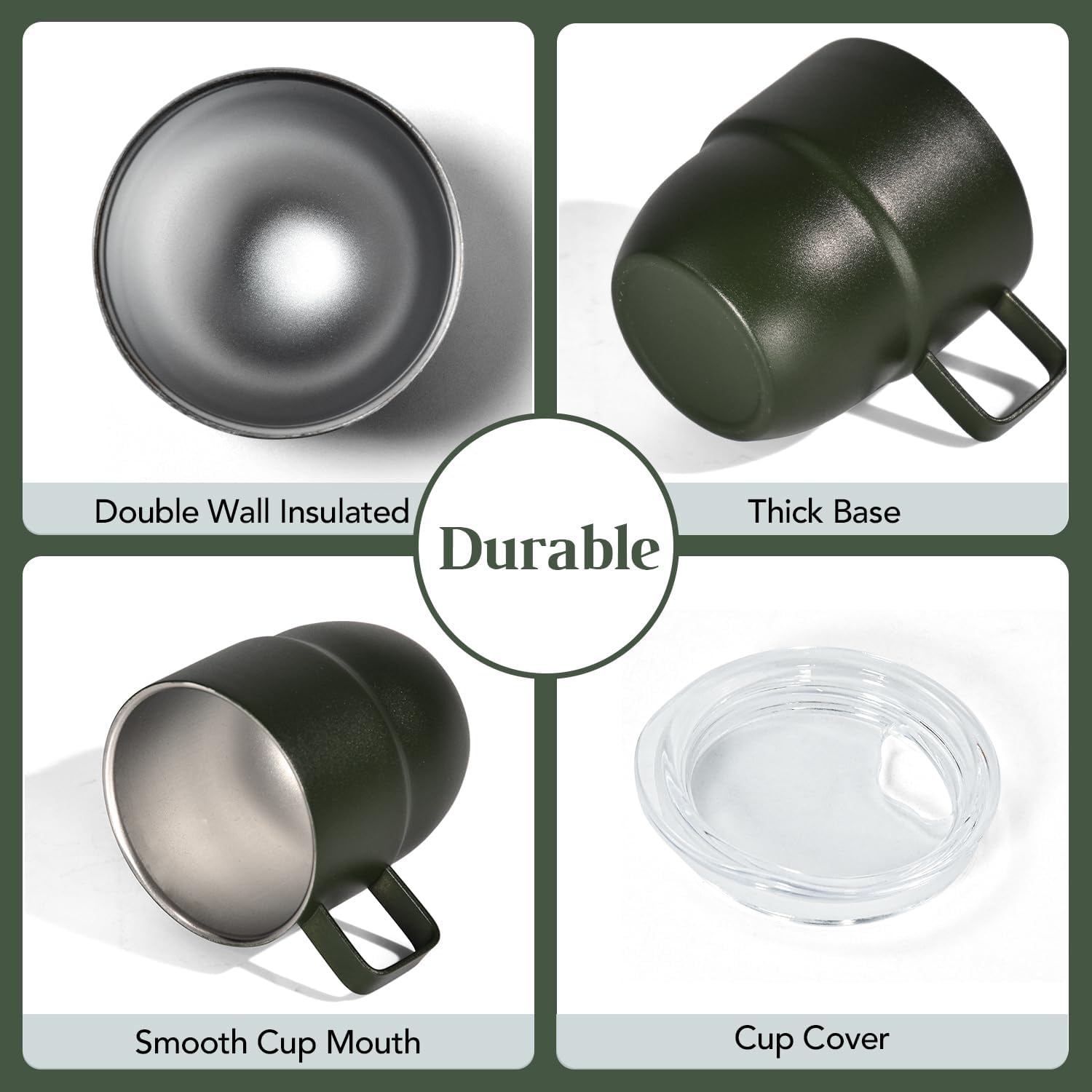 - DOUBLE WALL STAINLESS STEEL: Our espresso cups are made from double wall 18/8 stainless steel, vacuum insulated. Compared to ceramic lining, stainless steel lining are more durable, anti-scald, odourless, not break easily, and better at retaining hot or cold. Whether it's a hot coffee or an iced coke, this small cup is up to the task!