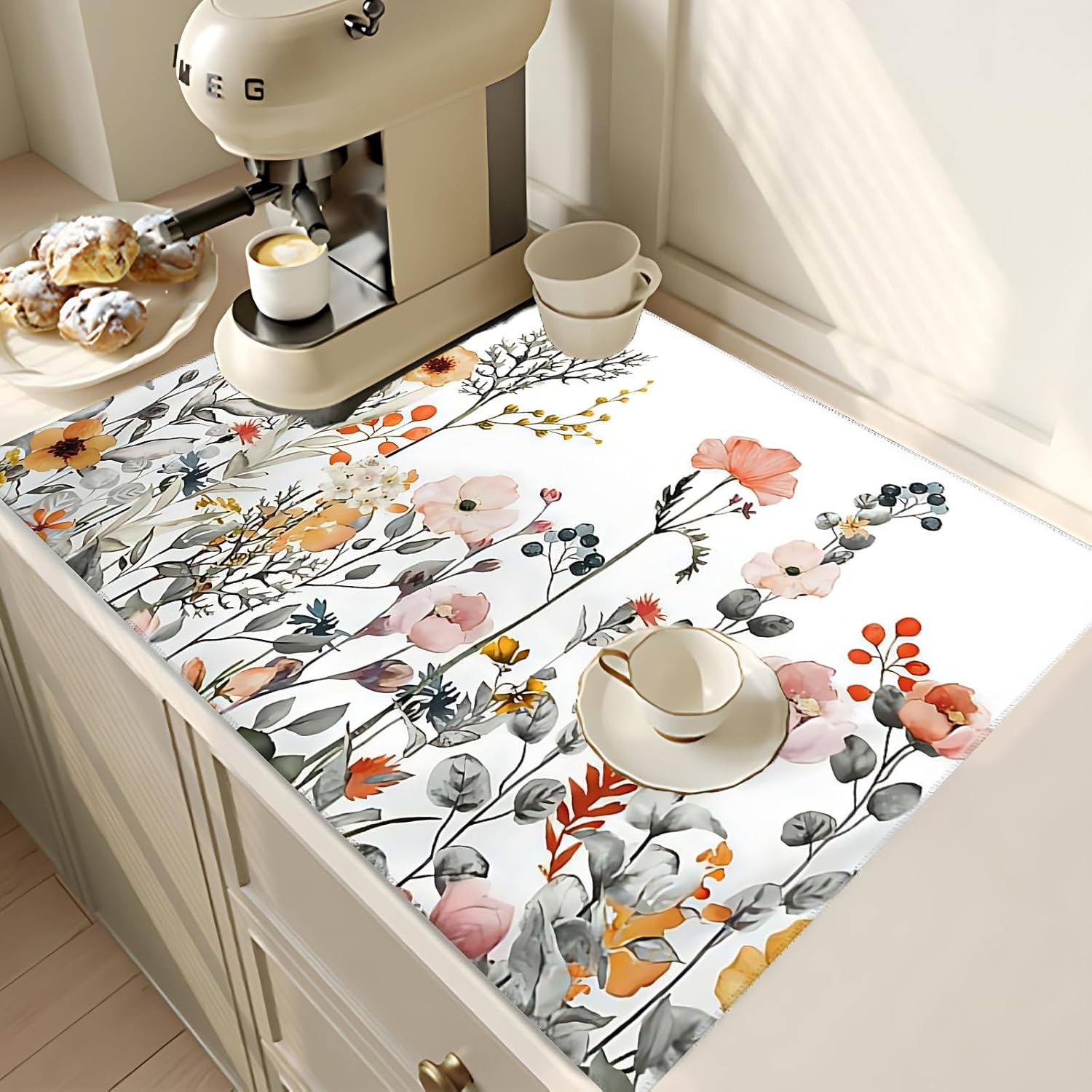- 【Exquisite Design】The combination of interesting and cute pattern design and high-quality printing technology makes the dish drying mats and faucet mats perfectly presented.It absorbs water efficiently and is also an exquisite kitchen decoration.