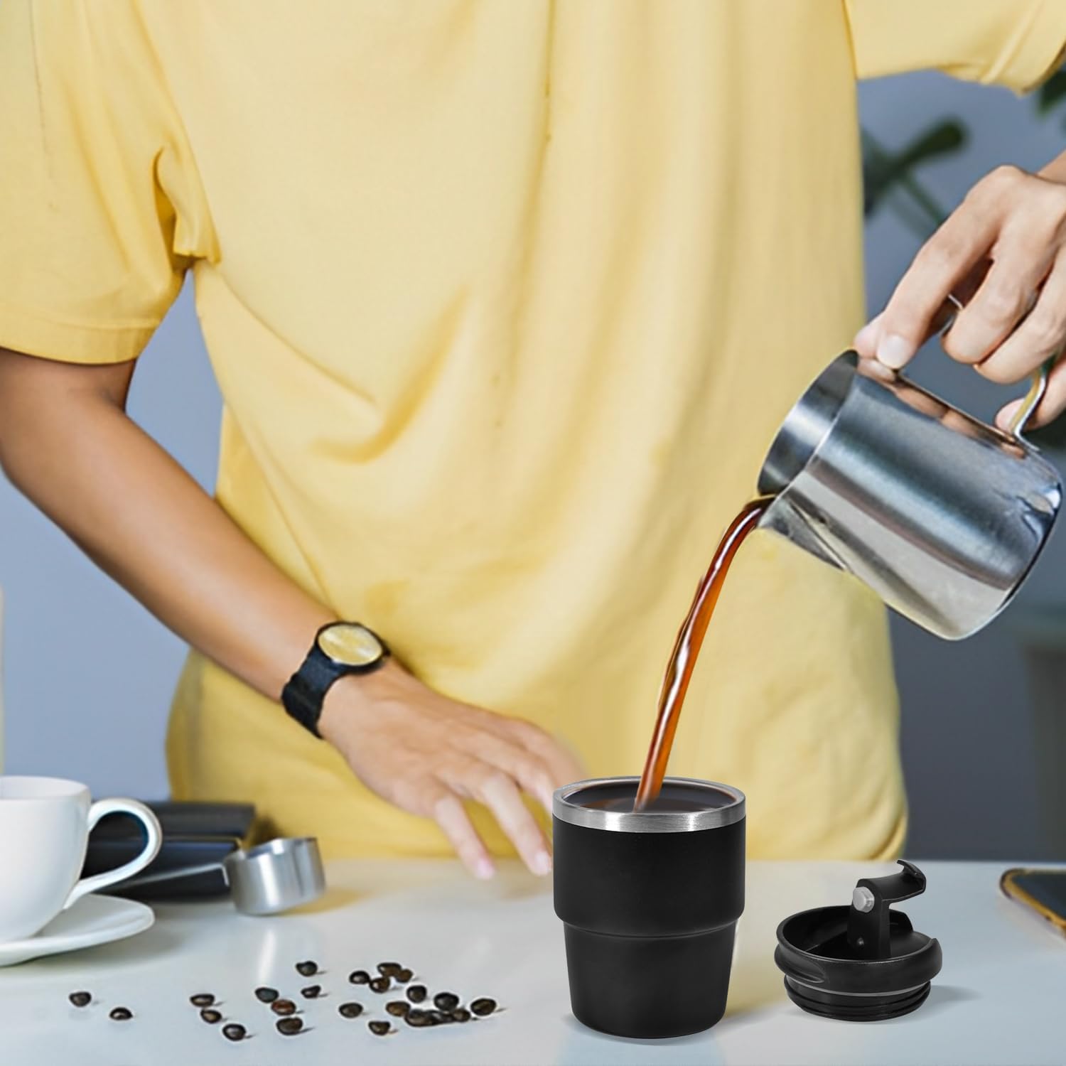 - LEAKPROOF DESIGN: Are you still dealing with accidentally spilled coffee that are hard to clean? Our espresso coffee cups have leak proof lids! Espresso coffee shots cup are stackable to save space in the kitchen. Our 6oz stackable cups are ideal as espresso to go cups when you are on the go or traveling.