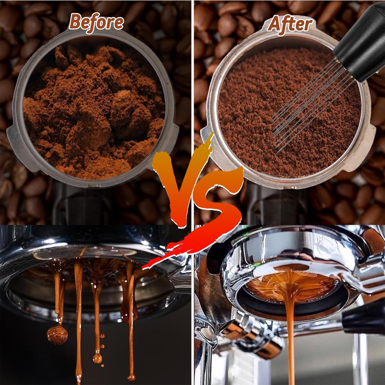 - Tamper pad and WDT tool-The coffee tamper set includes a silicone tamper pad and a 304 stainless steel espresso dispensing tool. The silicone mat protects your countertop and espresso tamper from potential damage, and also traps coffee grounds from the base of the tamper, keeping your countertop clean and tidy. In addition, the stainless steel espresso tamper improves the quality of your coffee making by evenly and loosely mixing the grounds.