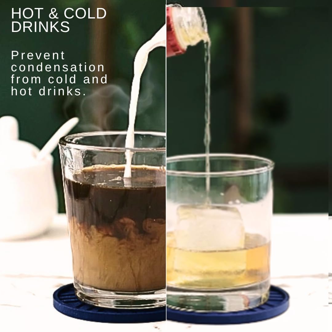 - NO MORE PUDDLES - Our drink coasters have elegant, grooved patterns that collect condensation from your cold drinks. Now you don't have to worry about liquid spilling over into your table or teal desk.