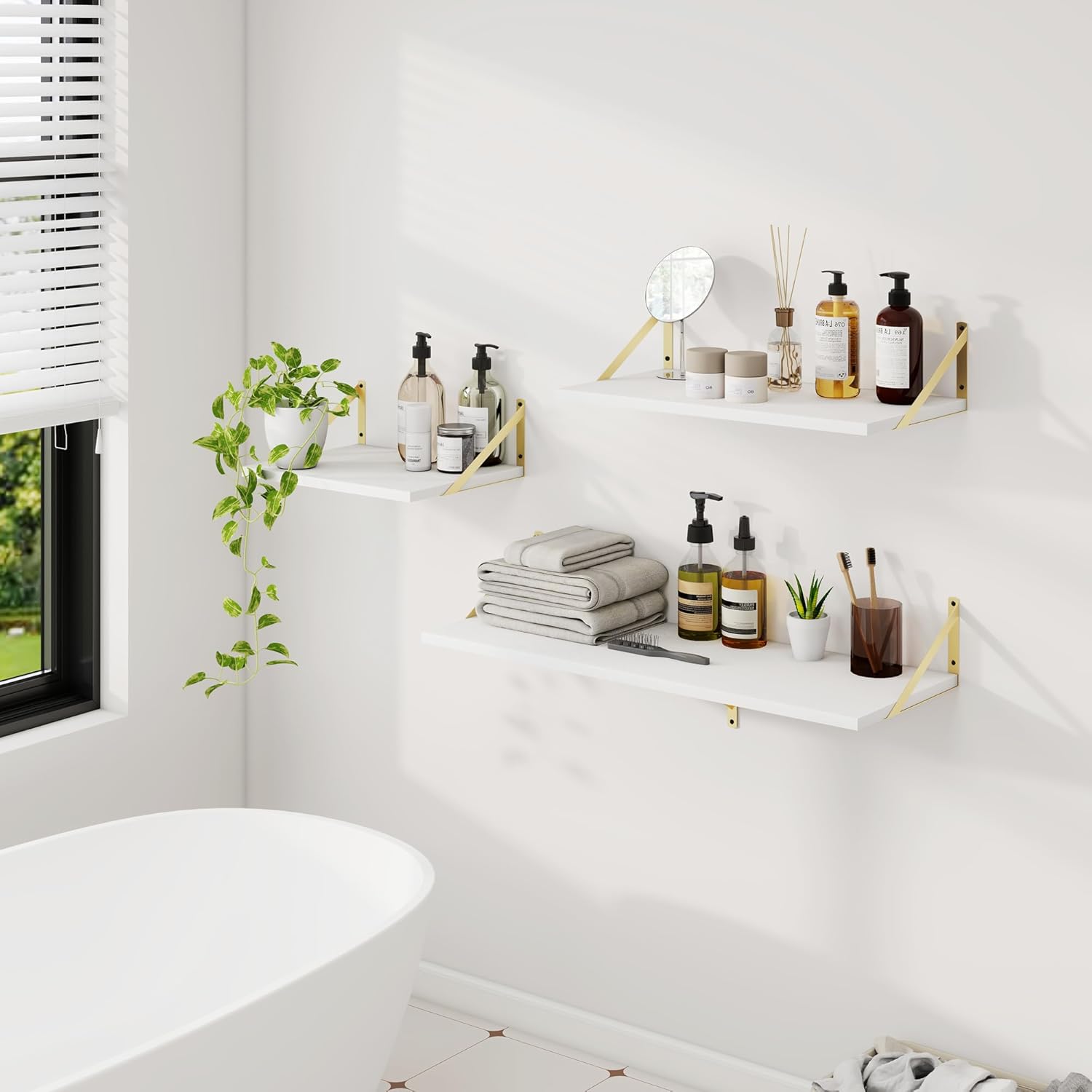 - Wall Decor and Storage: These classic and practical white floating shelves are the perfect solution to transform blank, uninspiring walls into stylish, functional displays. Showcase your favorite books, collectibles, artwork, and more with ease, adding both character and organization to any room.