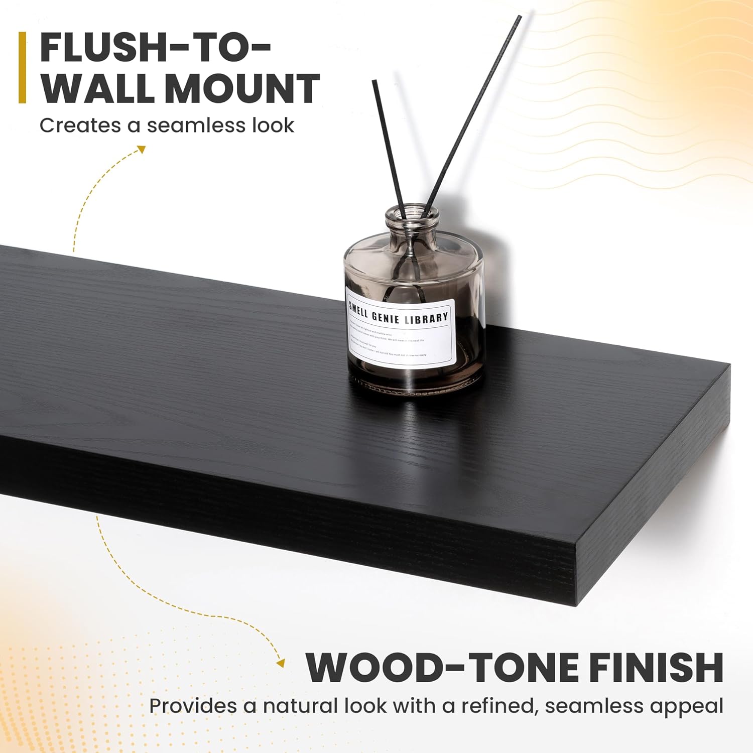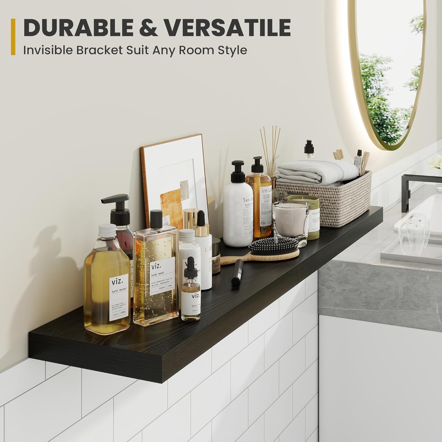 - [QUICK INSTALLATION WITH DETAILED GUIDES]: Our floating shelves include all mounting hardware and a comprehensive guide, enabling quick setup in under 10 minutes. Follow the step-by-step instructions to enjoy these beautiful shelves effortlessly, instantly upgrading your living space.