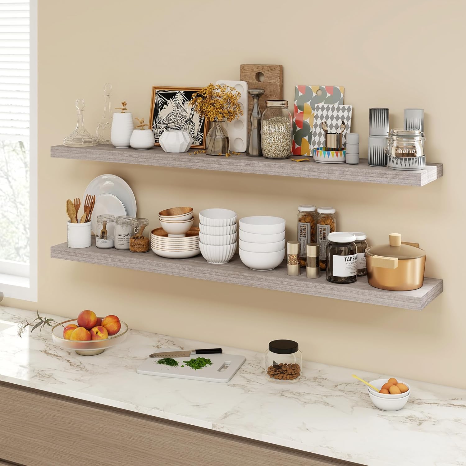 - [ROBUST & SECURE MOUNTING]: Equipped with a sturdy, hidden mounting bracket, these 55-inch floating shelves ensure solid support for your items. Designed for easy and secure installation, they come with all necessary hardware for a firm, wobble-free setup, allowing you to confidently display decor, photos, or functional items with style.