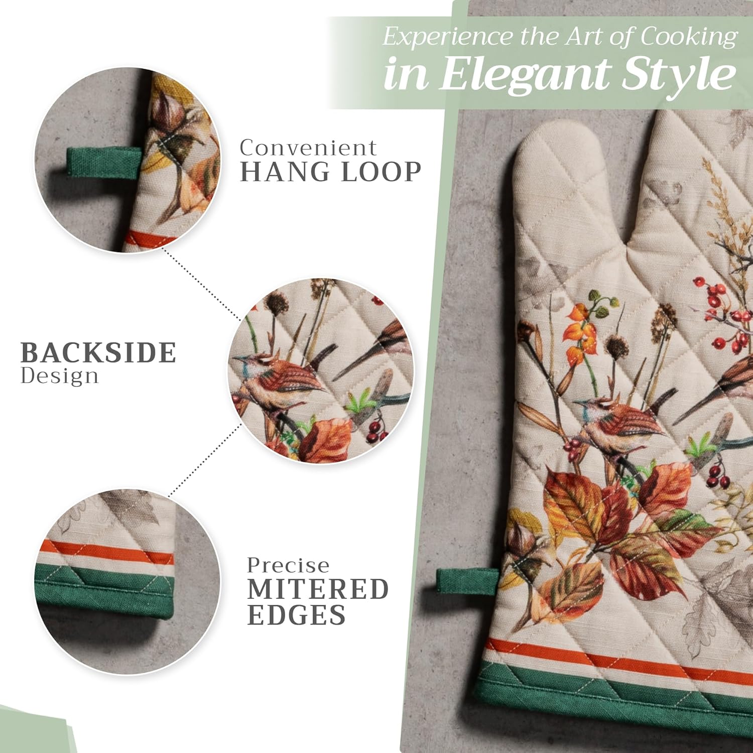 Maison d' Hermine Oven Gloves 100% Cotton Oven Mitt 7" x 13" with Loop Heat Resistant, BBQ, Cooking Gloves, Baking, Grilling, Kitchen, Handling Hot Pans (Pack of 1, Recolte)