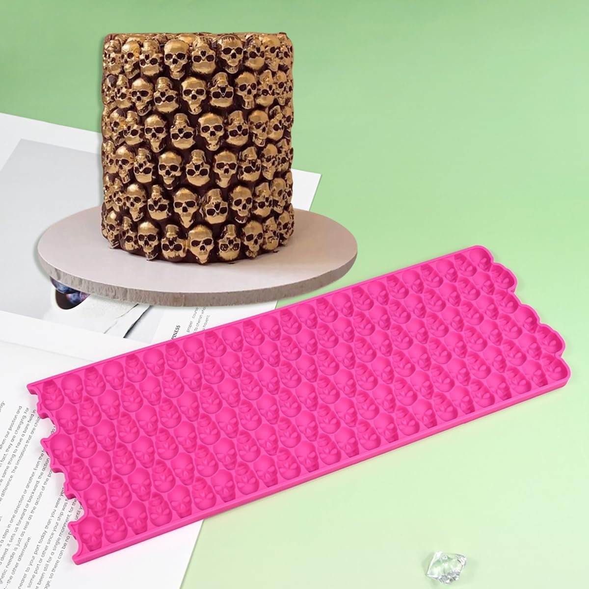 mostsom Silicone Mold 3D Hollow Out Lace Molds 3D Skull Cake Lace Mat Halloween Silicone Mould Fondant Mold Chocolate Stencil Cake Decorating Border Bakeware (K_ Skull Shape)