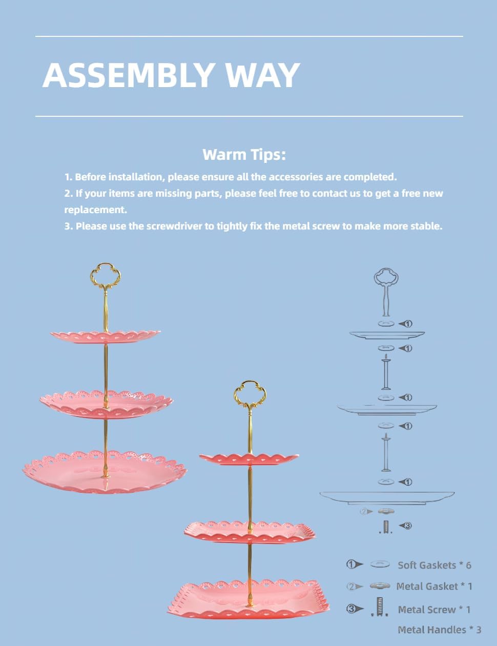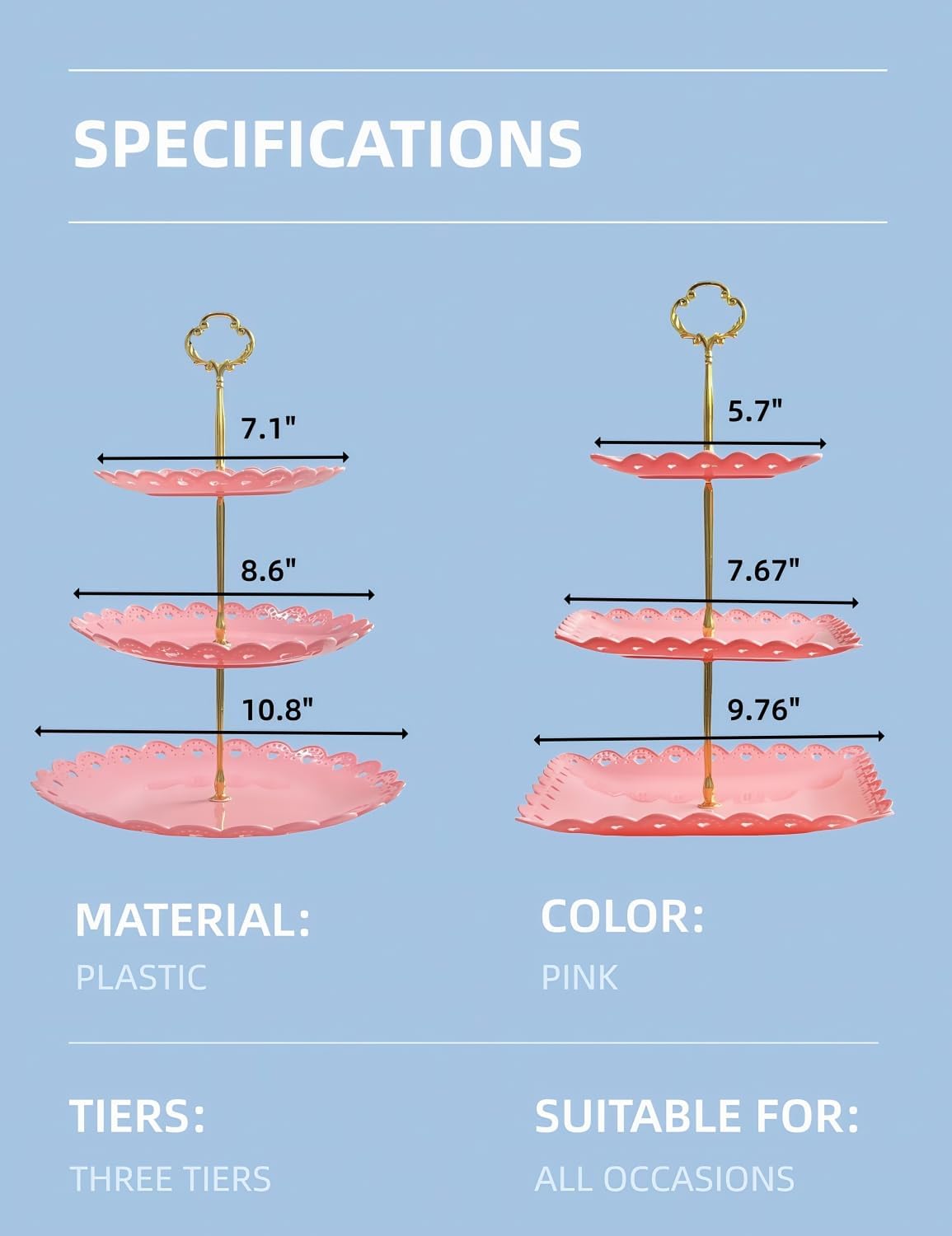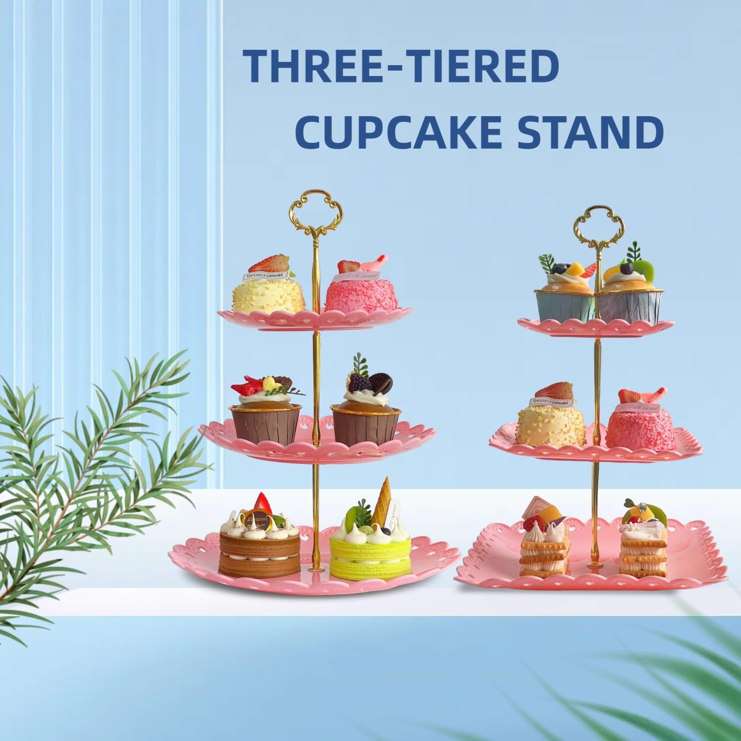 - Material: The 3 tiered serving stand is made of PP plastic, safe, durable and reusable. Easy to clean and easy to move . Compare with other plastic stand, cupcake stand is more thicker and sturdy