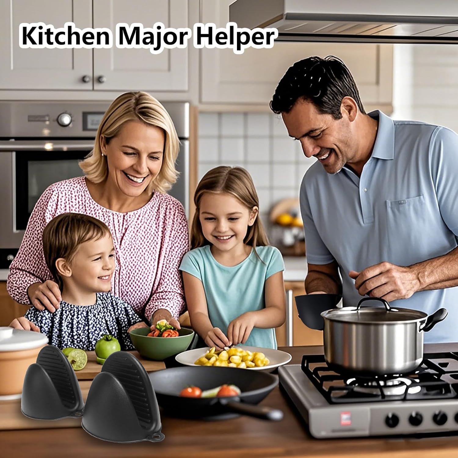 Silicone Oven Mitts Heat Resistant Hot Pot Holders Set for Kitchens - Mini Oven Mittens Silicone Rubber Gloves Small Pot Pinch Grip for Cooking & Baking, 6 Pack Black