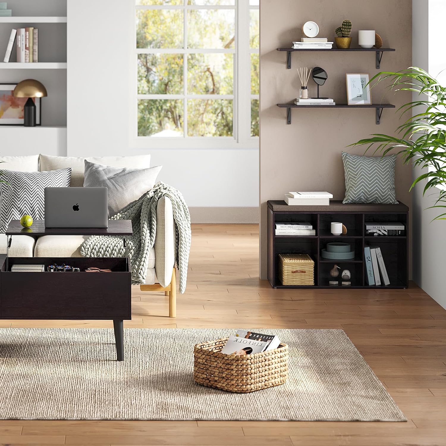 - ăWide ApplicationăThe shelves for wall storage is gospel of small family to enjoy the tranquility of home. The large floating shelves allow you to store books, games, decorations, plants, towels, photos, etc. Creating extra storage in living room, bathroom, bedroom, closet, balcony, study, kitchen, laundry, bar area, pantry and office, etc