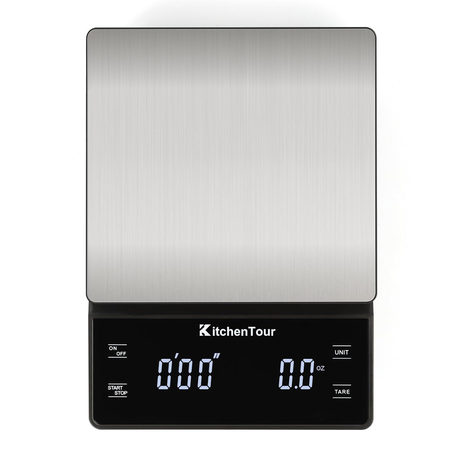 KitchenTour Coffee Scale with Timer 3kg/0.1g - High Precision Pour Over Drip Espresso Scale with Back-Lit LCD Display - Stain Steel Platform(Batteries Included)