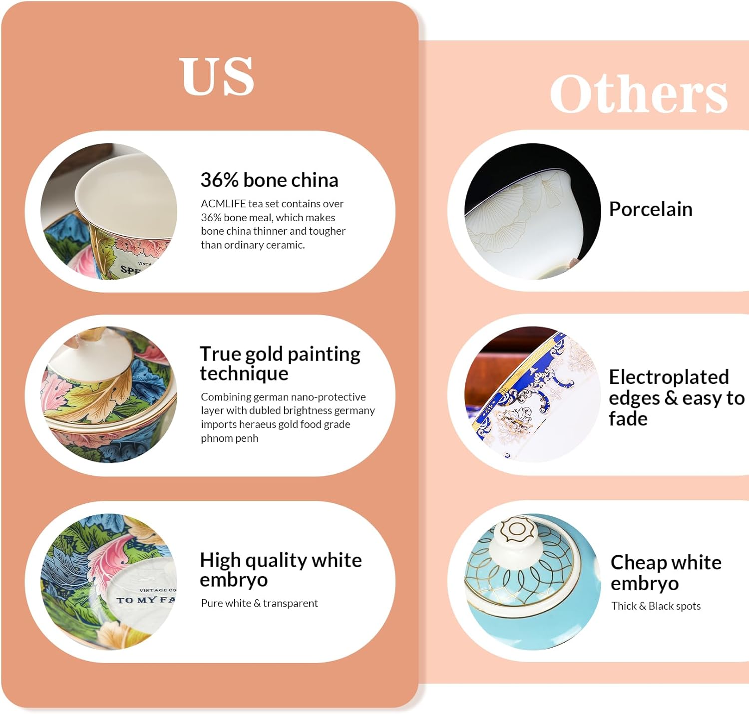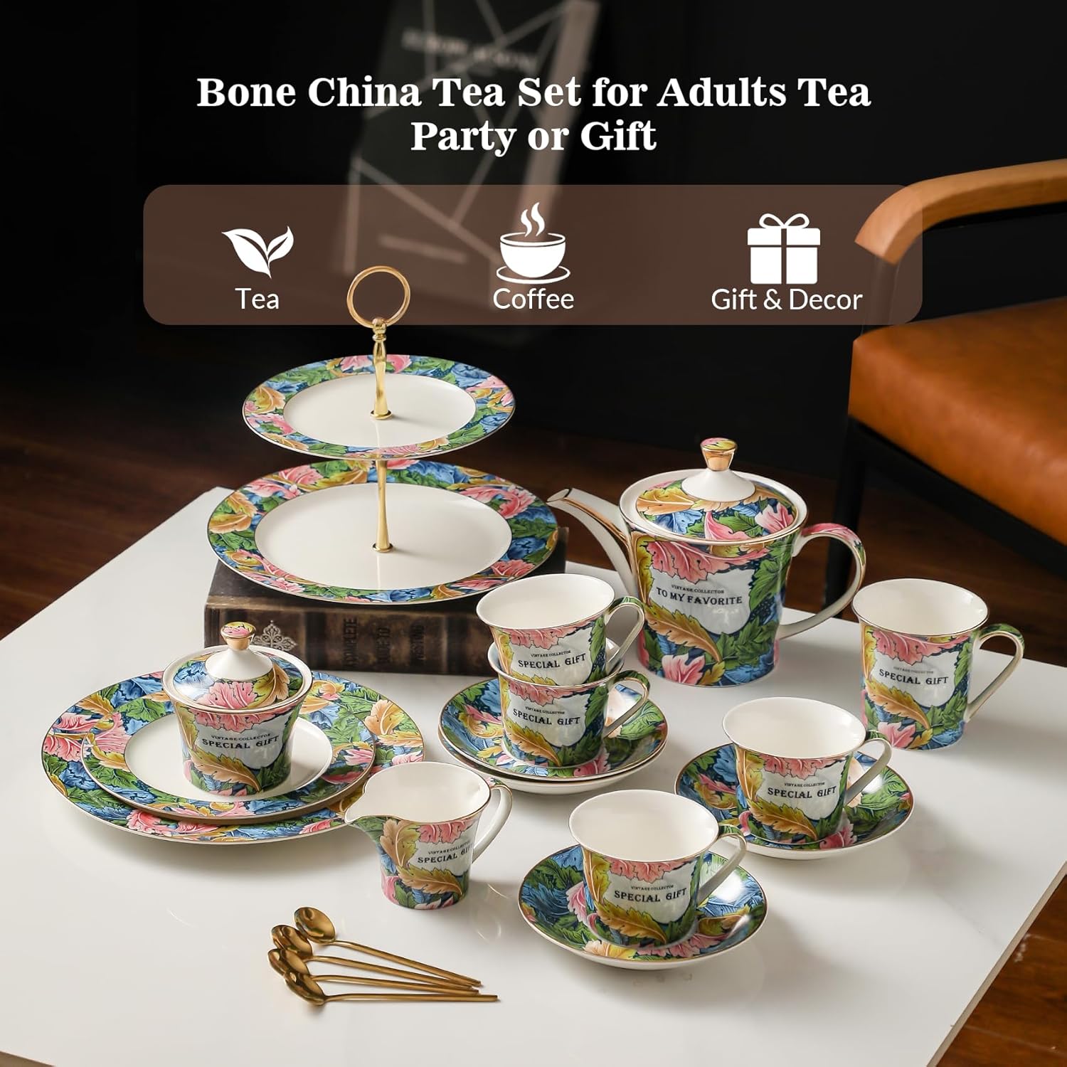 - Gift of relaxation: Beautiful gift for Christmas,mother's Day,teacher's Day, gifts for women,gifts for Adults. Surprise and delight your loved ones with our stunning tea set, featuring intricate details and a timeless design that will add a touch of sophistication to any tea party or gathering.