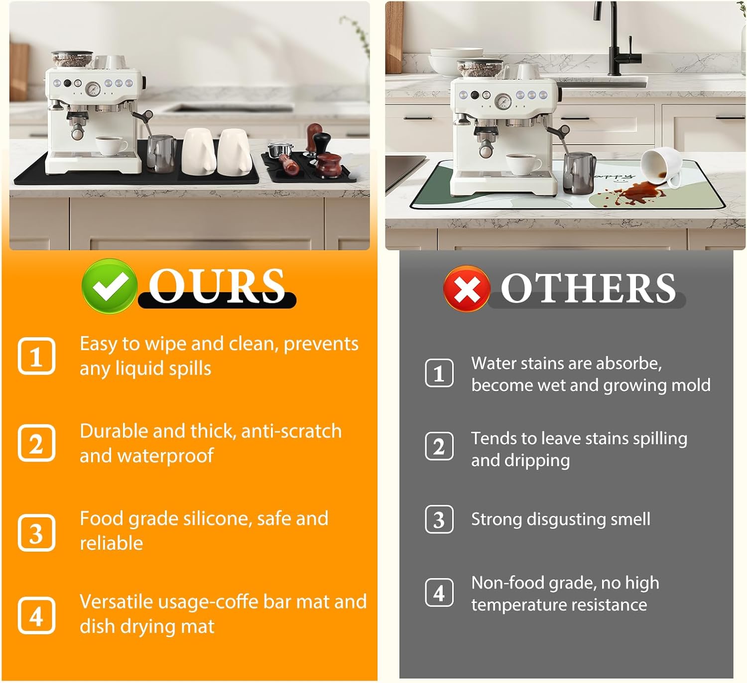 - Heat Resistant and Reduces Vibration: This silicone coffee mat offers excellent heat resistance, protecting your countertop from heat, spills, and scratches. It also absorbs vibrations from your coffee maker, significantly reducing noise and preventing potential damage to your countertop. A perfect blend of functionality and protection for your kitchen.