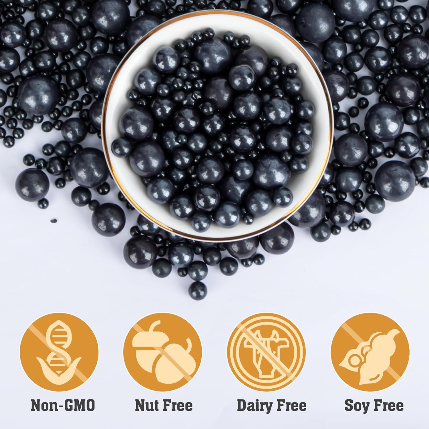 - 【Elegant Black Pearls for Versatile Use】:Edible black pearls adds a beautiful, classy touch to desserts, making them look extra special. These black candy pearls are perfect for decorating cakes, cupcakes, cookies, giving them a elegant, refined finish that’s sure to impress. Perfect for weddings, birthdays, anniversaries, Halloween, Christmas, Easter, Mother's Day, New Year’s and other special occasions.
