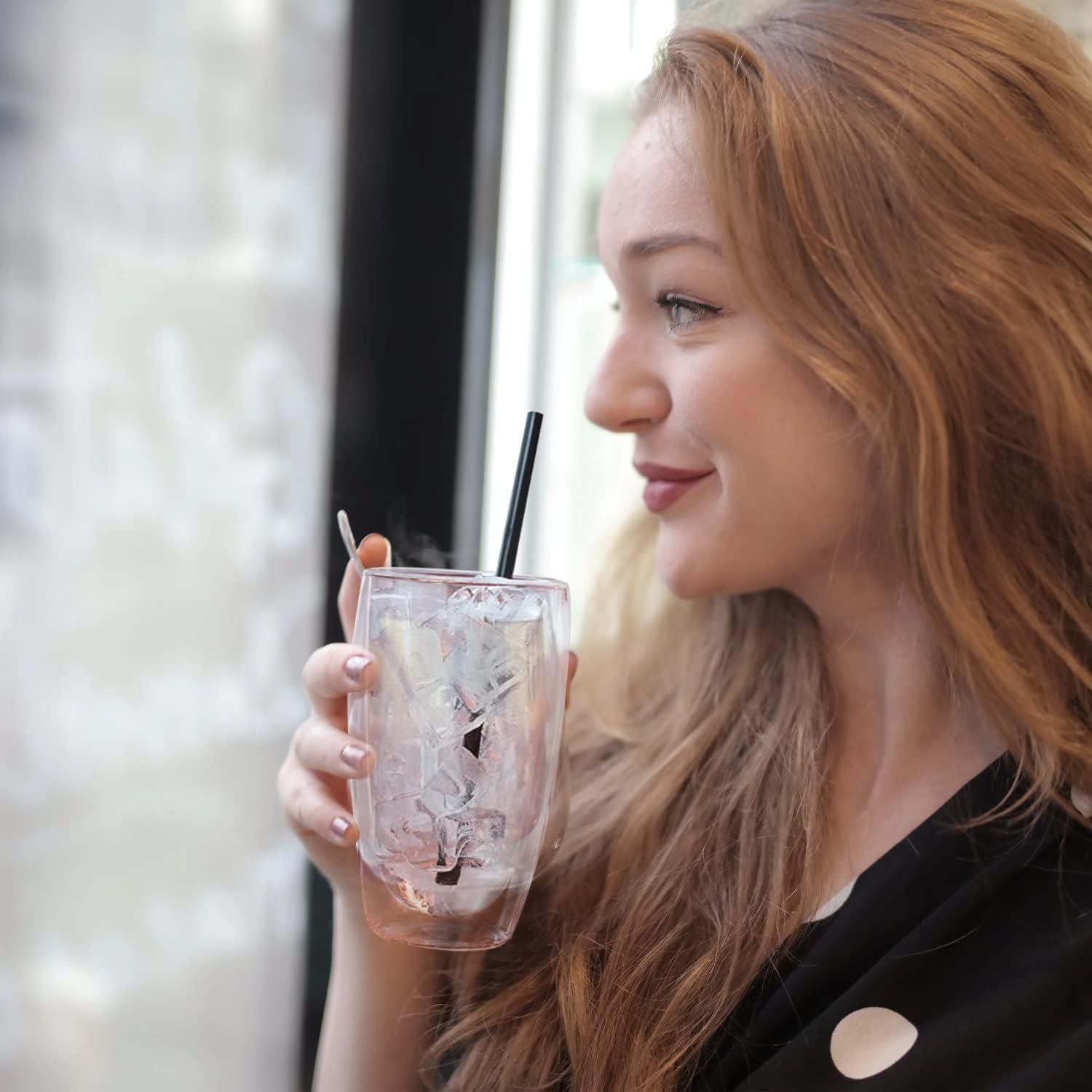 - Modern and Smart Design: The double wall glass coffee mugs have a really sleek, elegant design, which adds a great addition to the kitchen or your coffee routine. The double-wall design makes the outside of mug not hot when you hold and move it and prevent the condensation from happening with an iced drink.