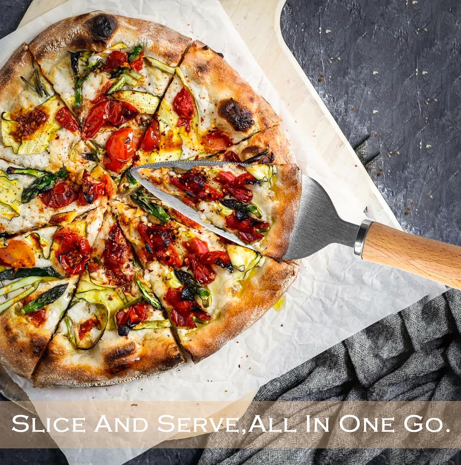 Pizza Cutter Rocker Blade with Wooden Handle and Guard, Sharp Stainless Steel Pizza Slicer, Dough Cutter Equipped with Pizza Spatula, Pizza Oven Accessories for Kitchen Commercial Use